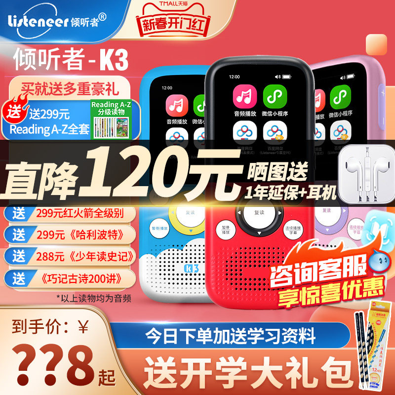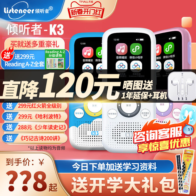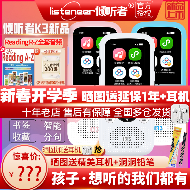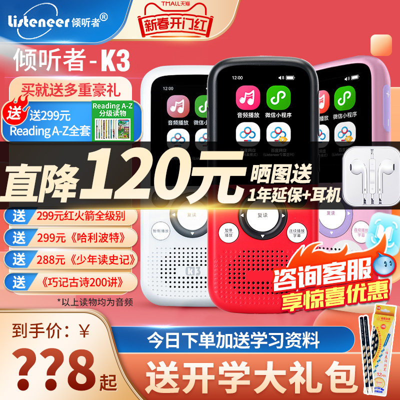 倾听者k3英语学习机儿童早教智能故事机复读机听力播放器小学一年级初中高中学生专用绘本听力宝官方旗舰