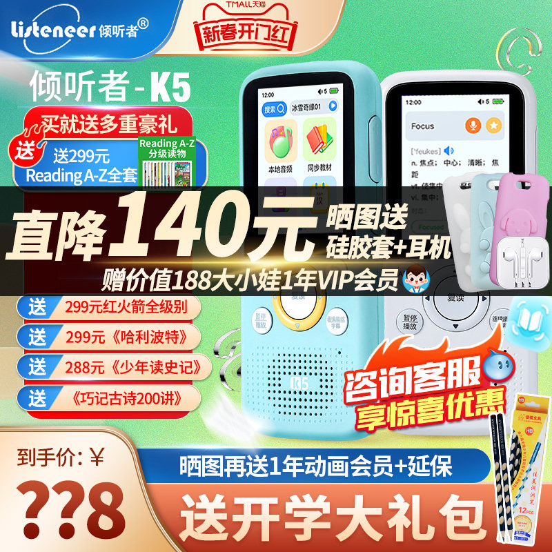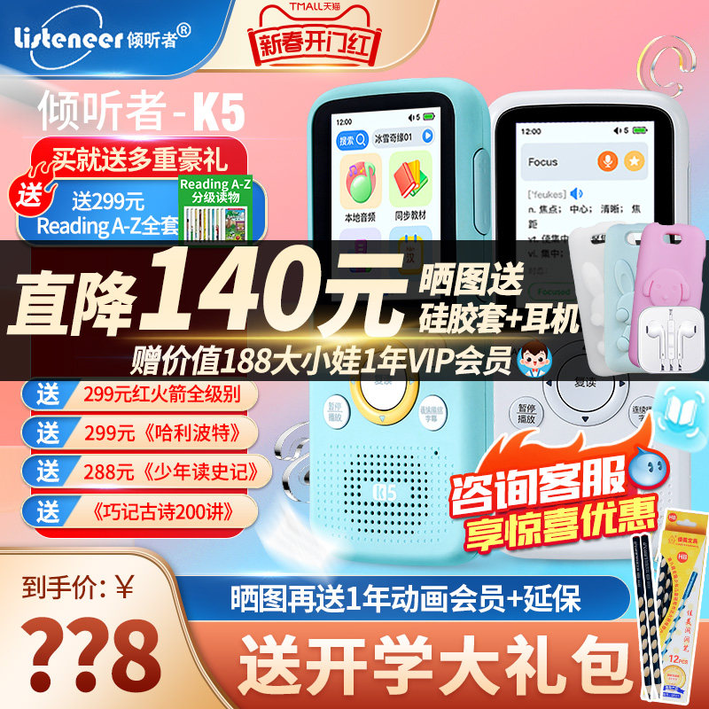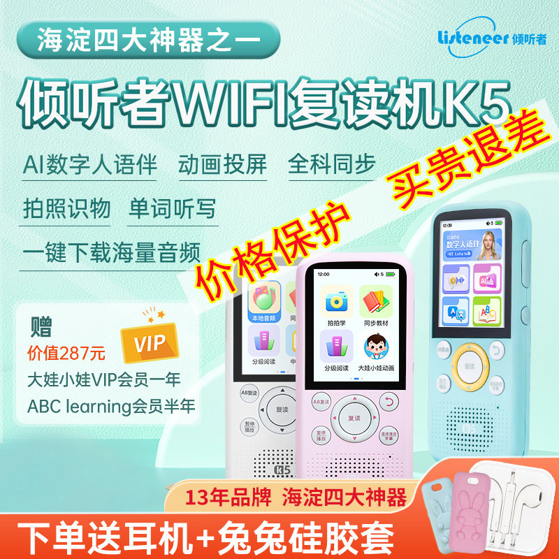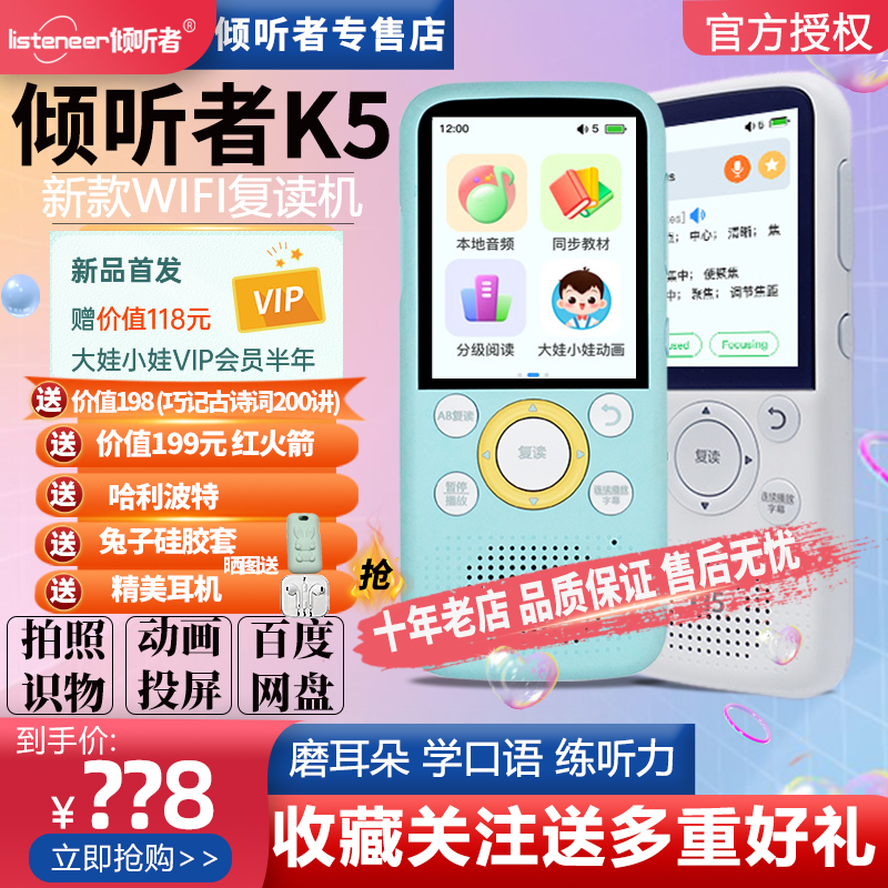listeneer倾听者K5复读机听力宝英语学习机幼儿小学初中高中大学生成人语文英语学习考研神器