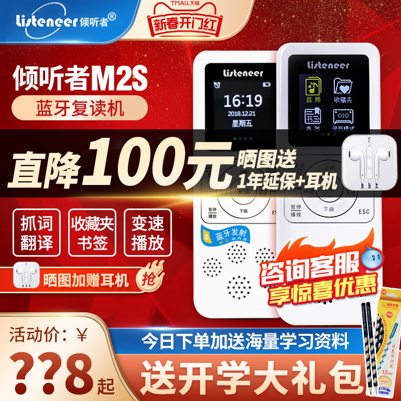 【双11狂欢】倾听者复读机m2英语听力学习机学生随身听蓝牙复读机