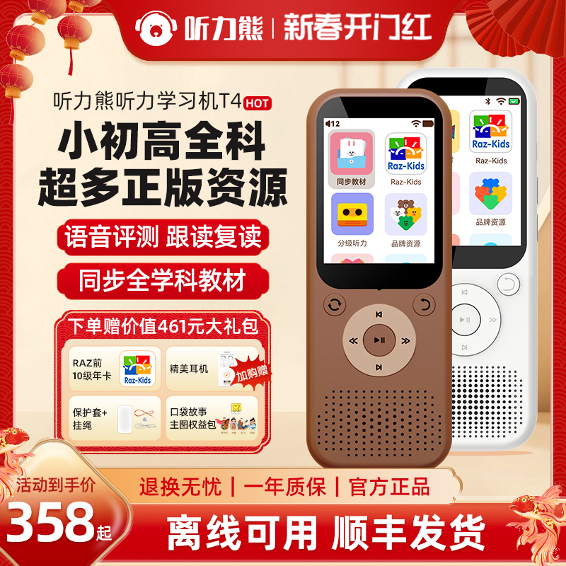 听力熊T6/T6LINE联名AI智能听力学习机磨耳朵神器复读机英语听力宝小初高学习机背单词学习神器