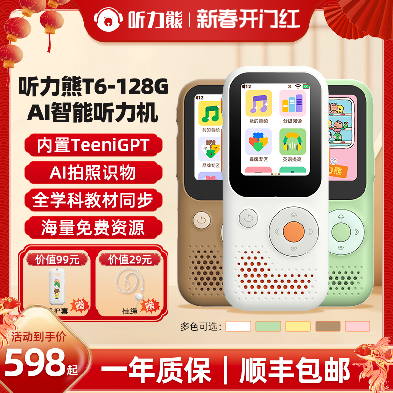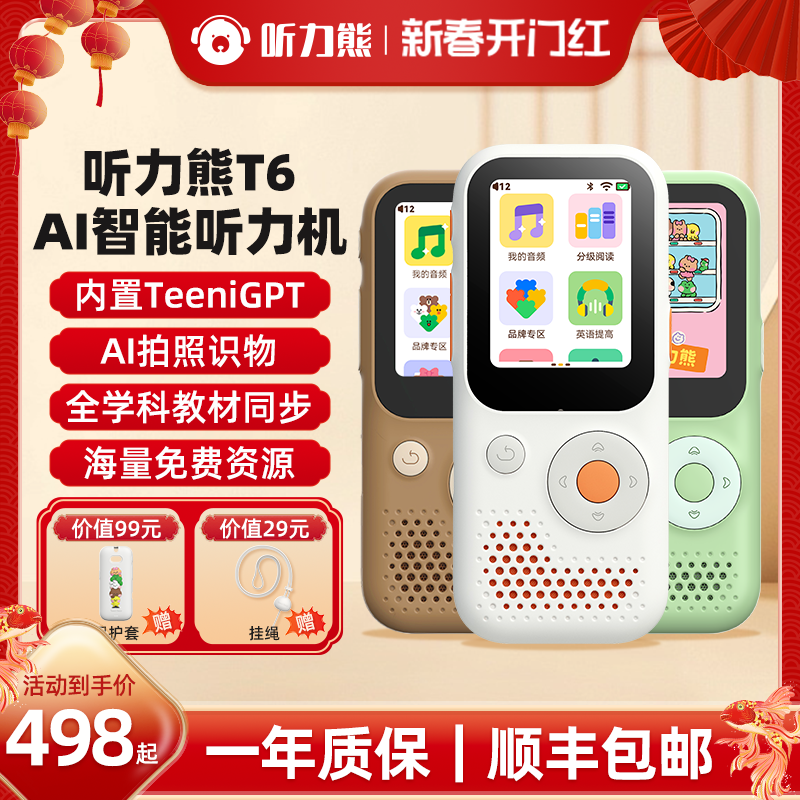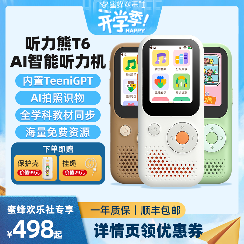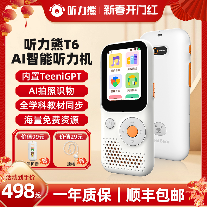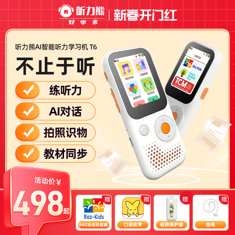 【重磅新品】听力熊T6AI智能听力学习机内置TeeniGPT英语听力宝磨耳朵学生专用复读机英语听力机翻译神器豆神