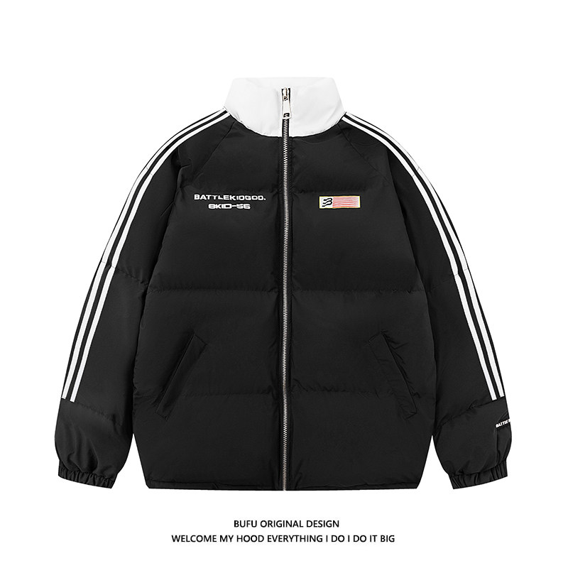 亿万少年BUFU国潮牌美式复古条纹旗帜杠条棉衣棉服情侣面包服外套