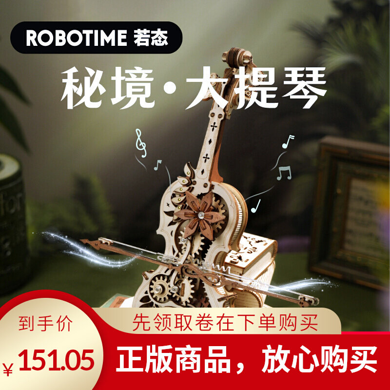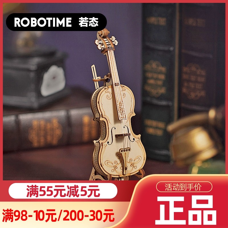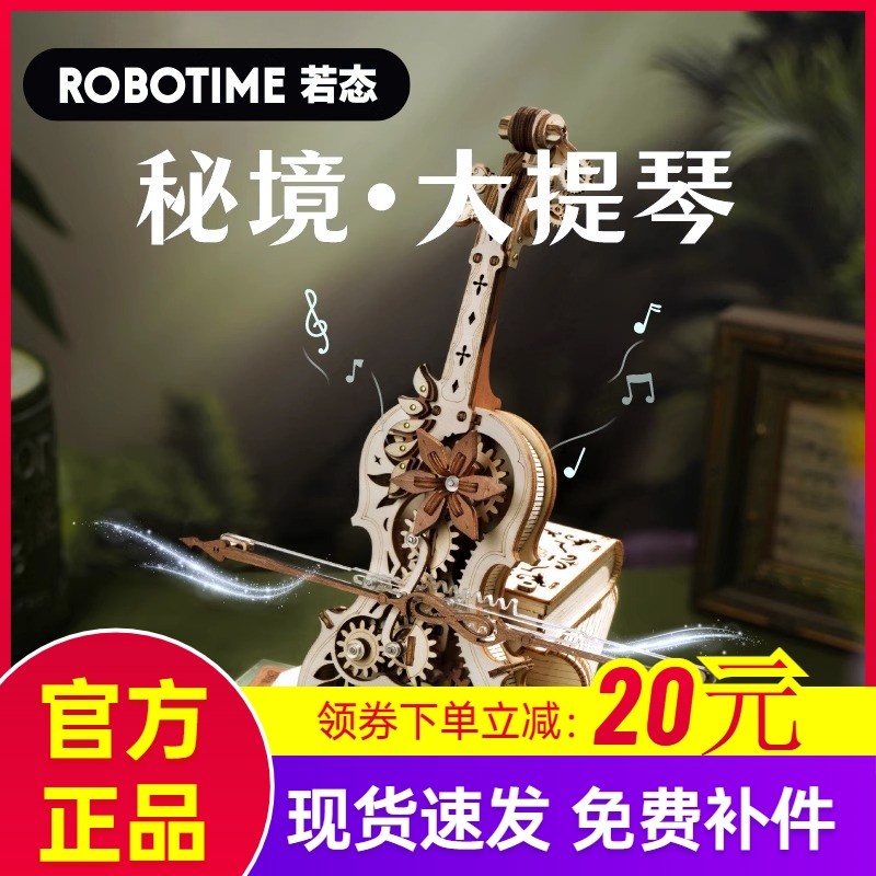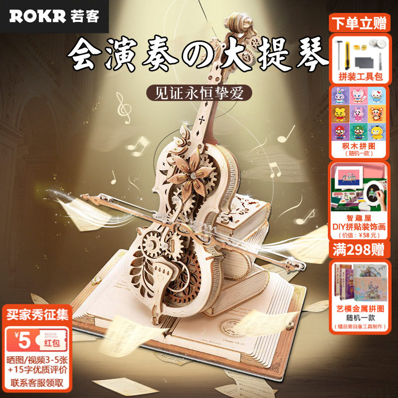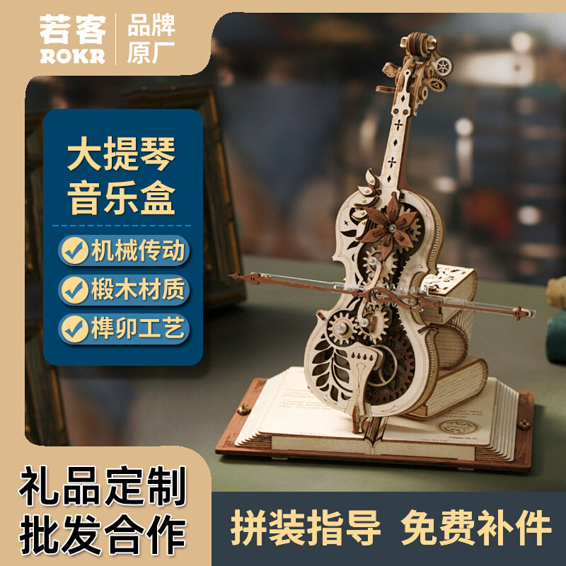 若客大提琴礼物木质拼装立体拼图模型手工diy益智儿童玩具音乐盒