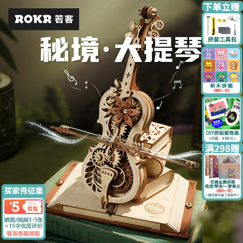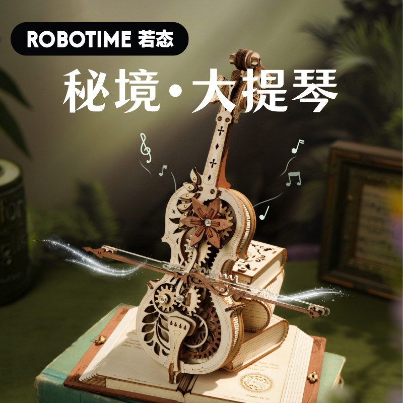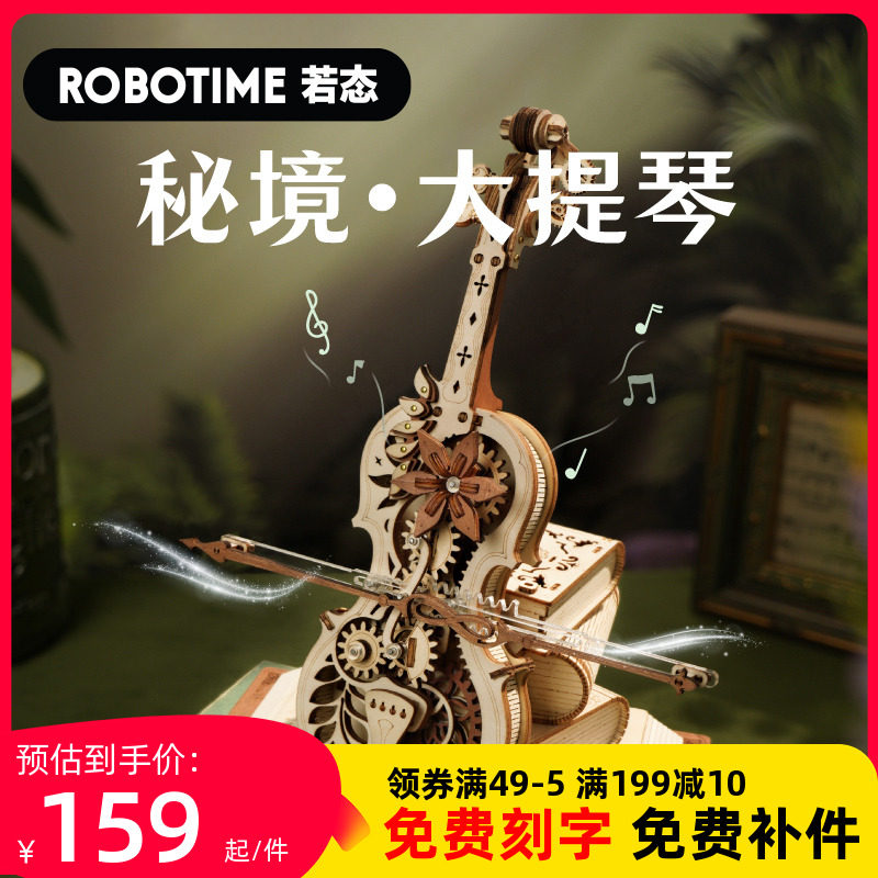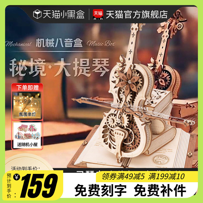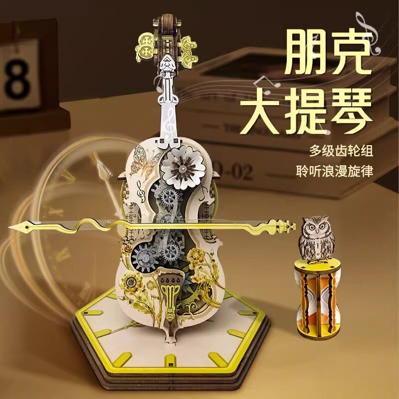 若客若态秘境大提琴八音盒音乐盒手工木质拼装模型积木生日圣诞