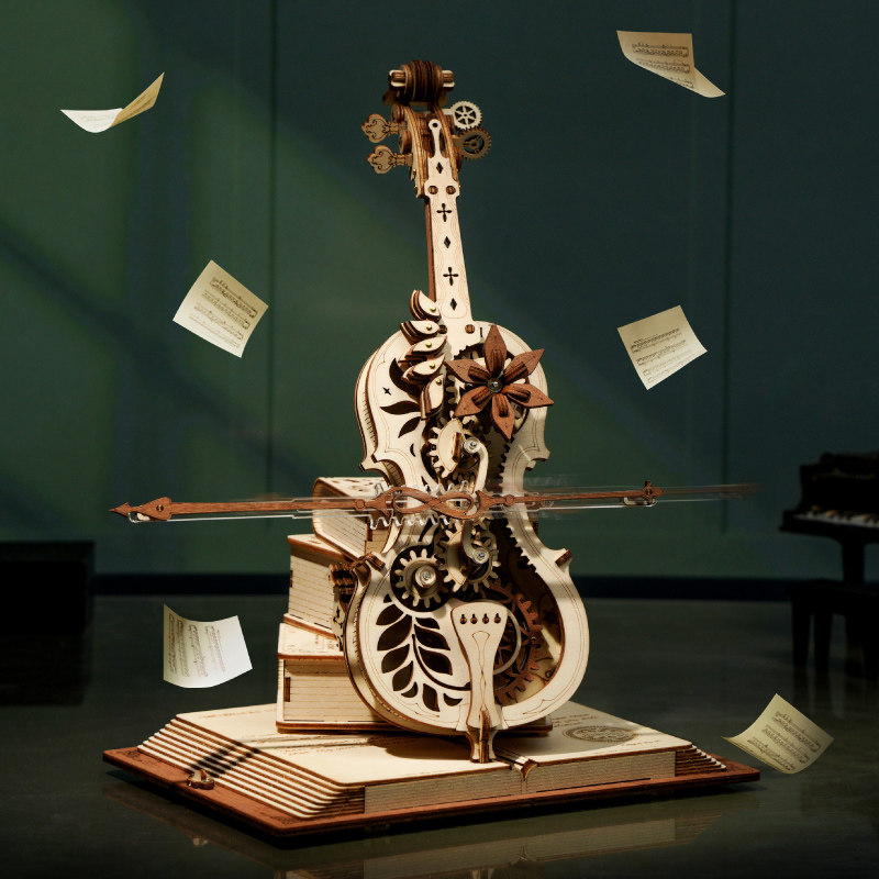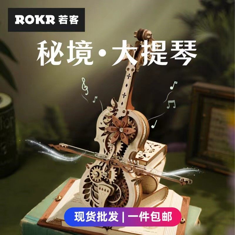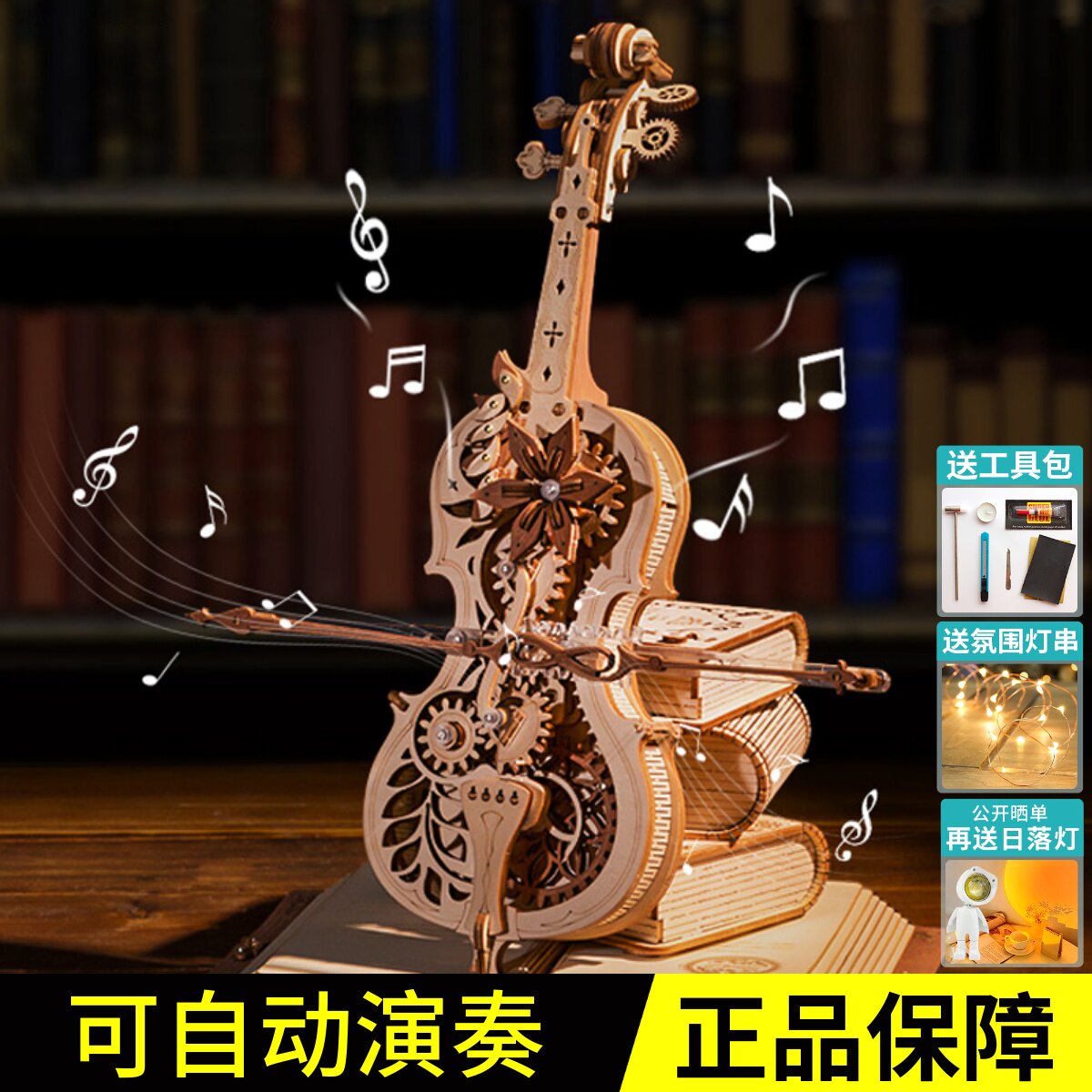 若客秘境大提琴音乐盒八音盒diy手工3d立体木质拼装模型礼物玩具