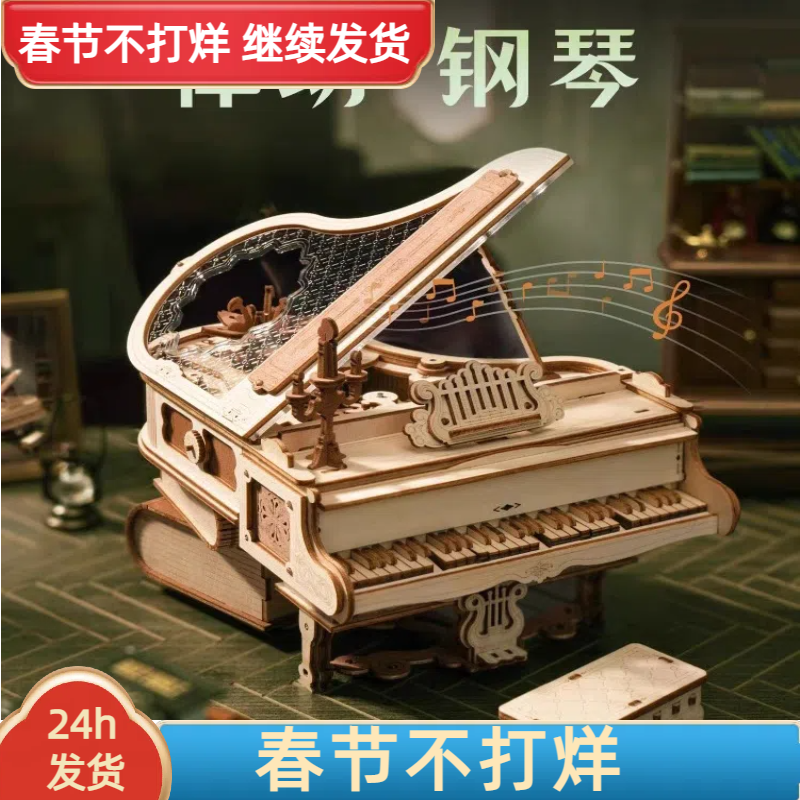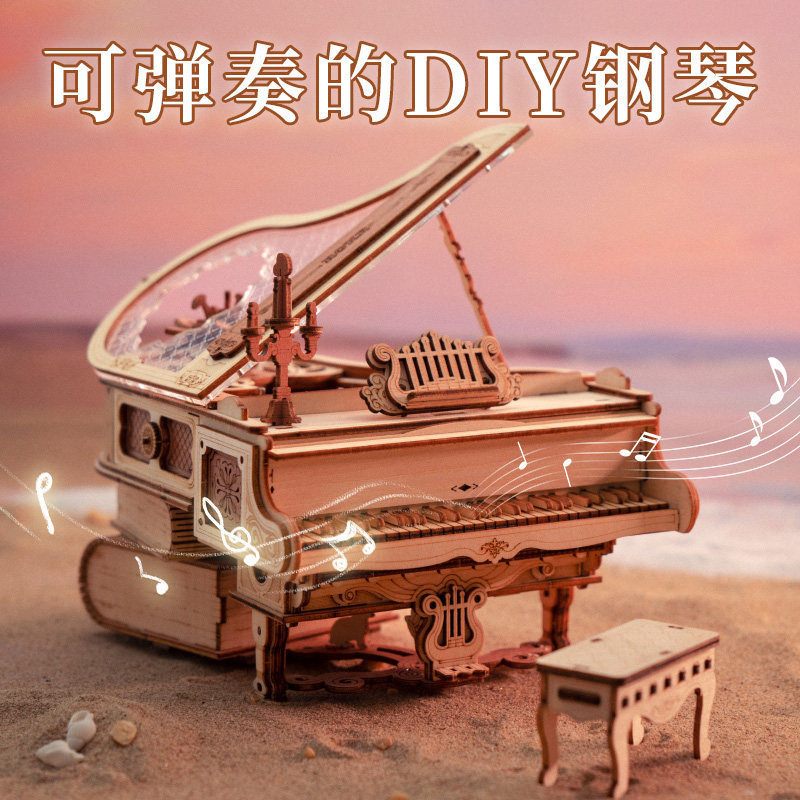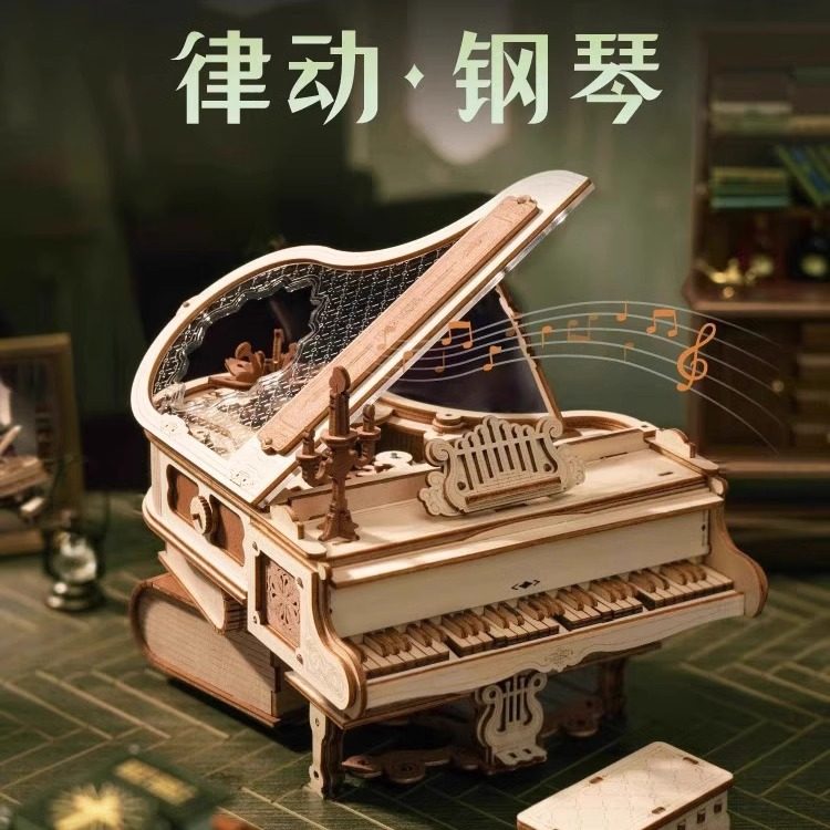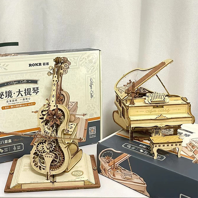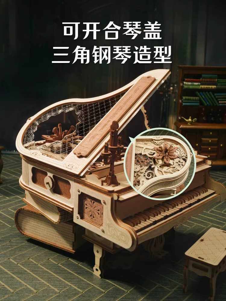 若客若来秘境大提琴钢琴八音盒木制diy拼装积木音乐模型摆件礼物