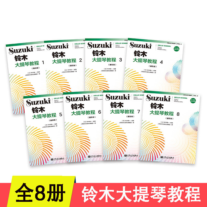 正版全套8册 铃木大提琴教程1-8 国际版 儿童大提琴基础练习曲教程曲谱书 人民音乐社 铃木镇一 大提琴小步舞曲奏鸣曲颤音练习教材