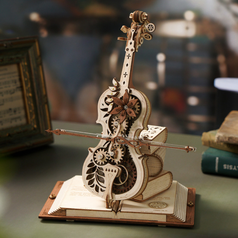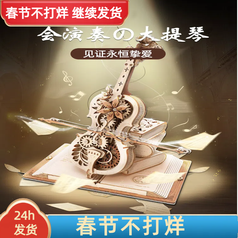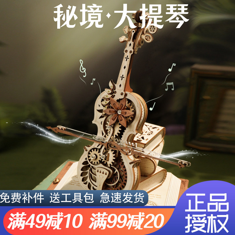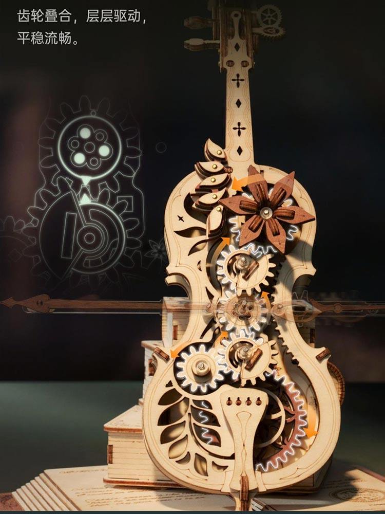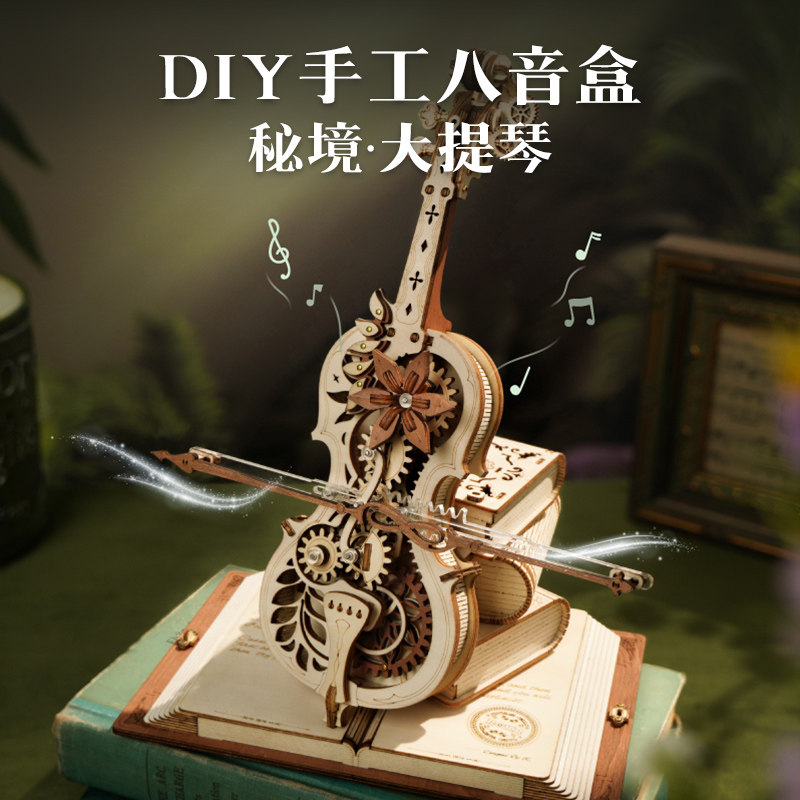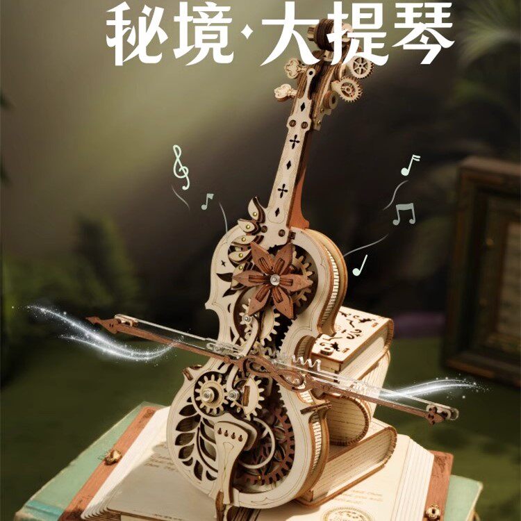 秘境大提琴音乐盒木质拼装情人节礼物创意手工立体模型摆件八音盒