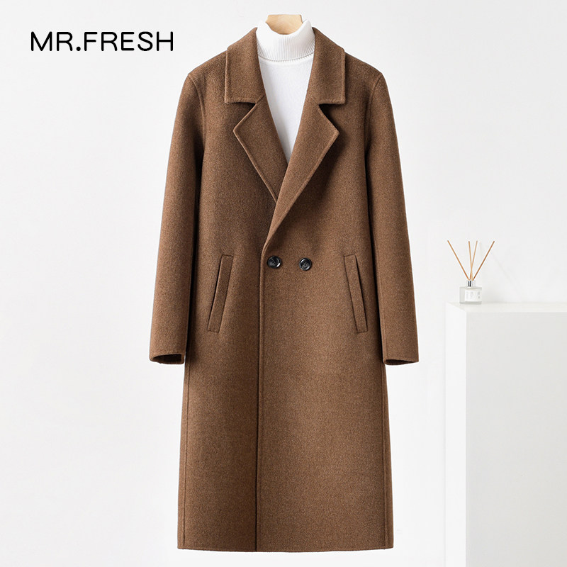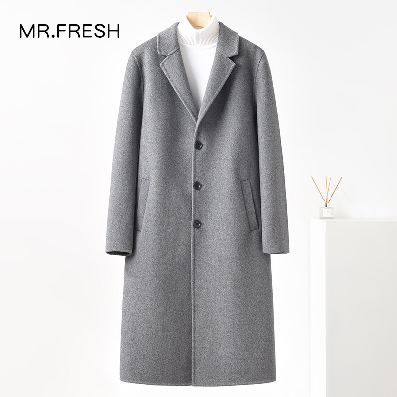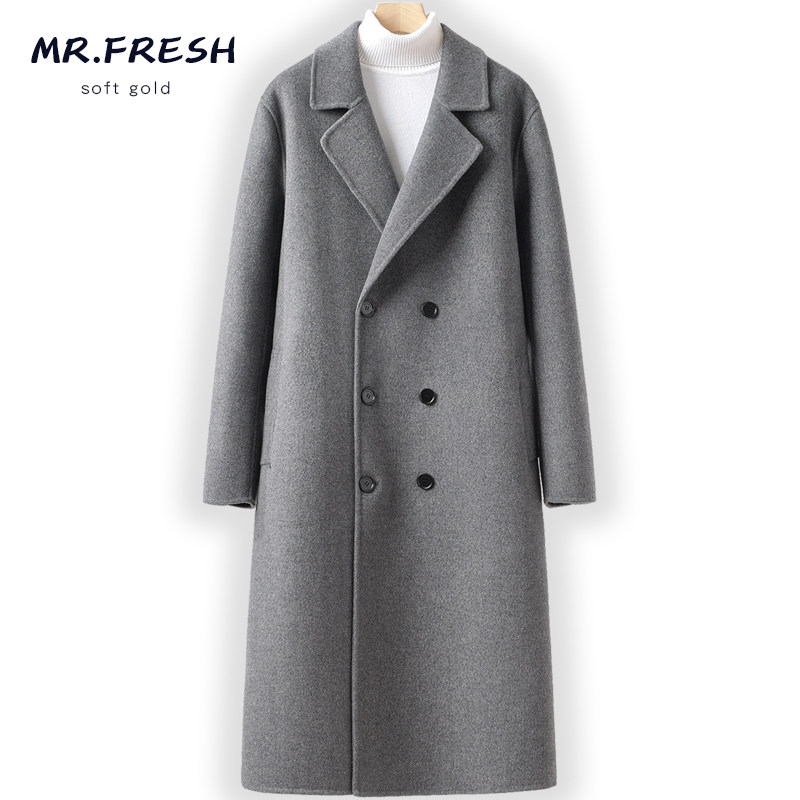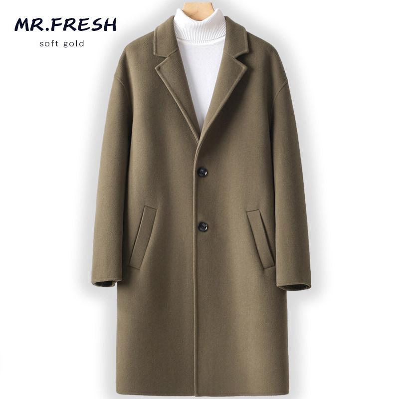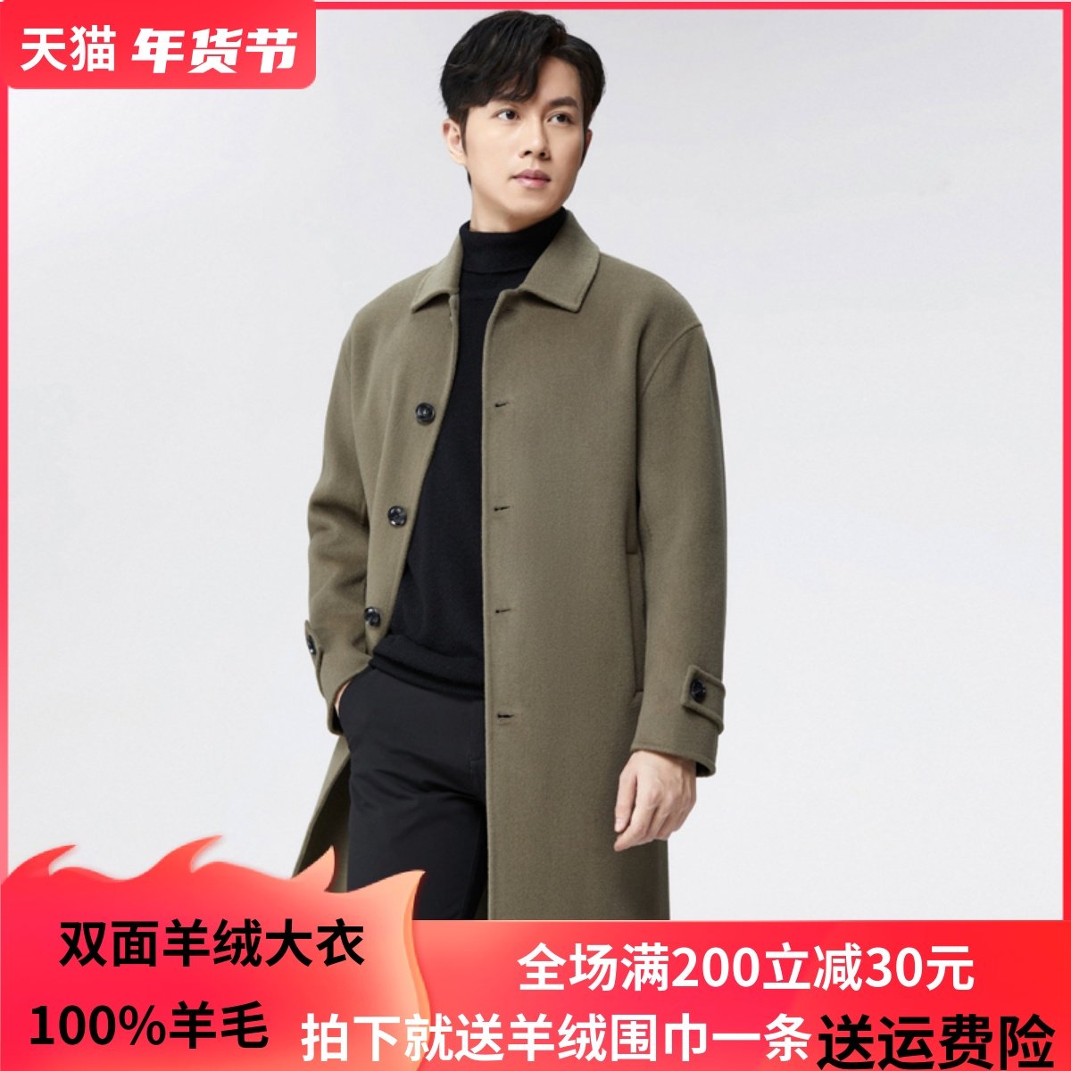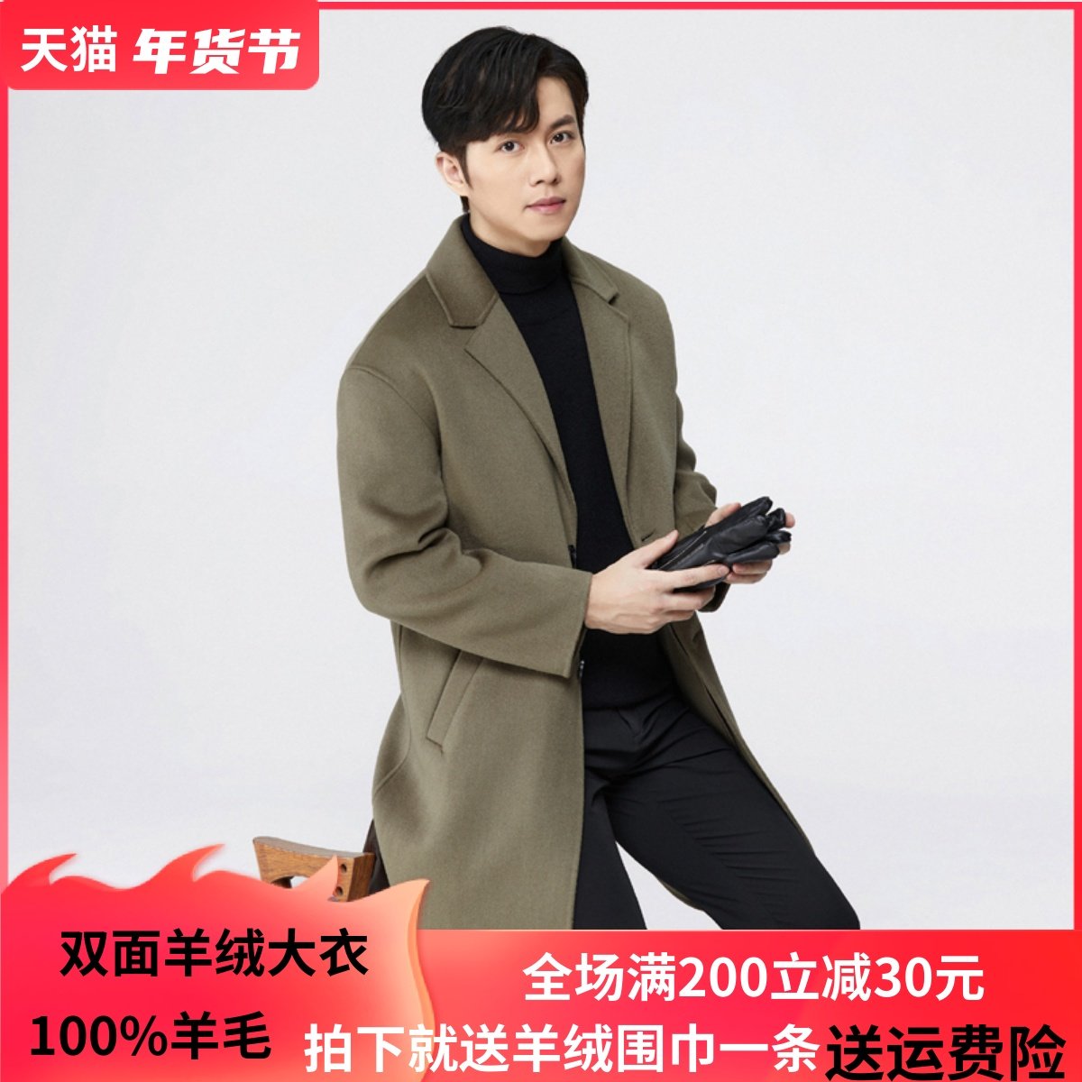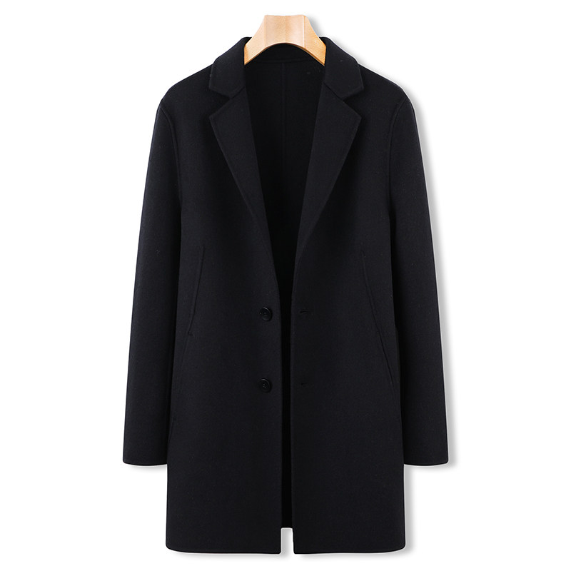 秋冬季羊毛大衣男士中长款过膝双面羊绒外套商务毛呢西装呢子风衣