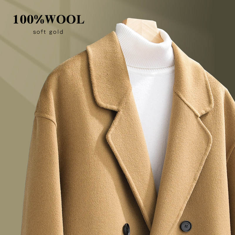 2023冬季新款羊毛双面毛呢大衣男士休闲西装外套双排扣呢子