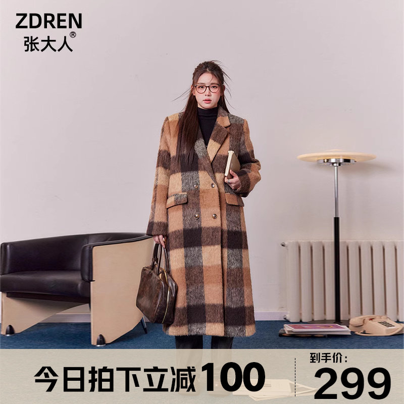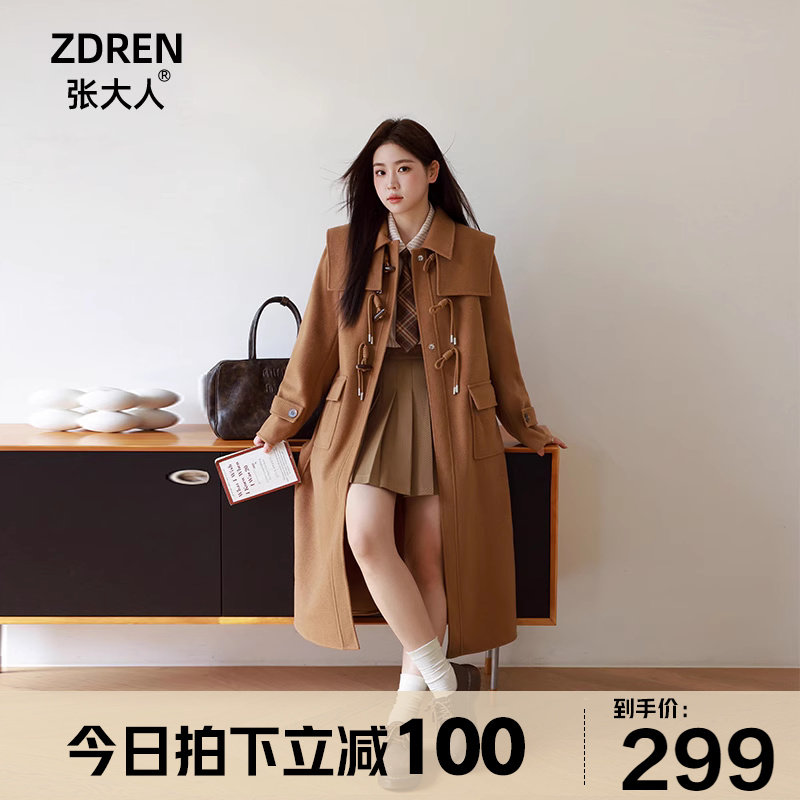 张大人秋冬大码女装胖mm显瘦学院风复古大衣英伦风中长款毛呢外套