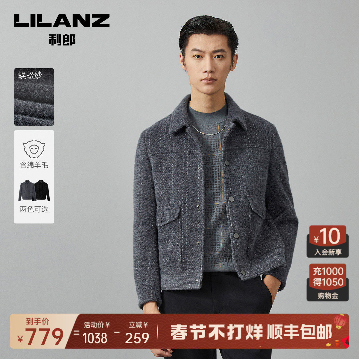 【蜈蚣纱】利郎官方 毛呢大衣男士2023冬新款短款保暖夹克外套