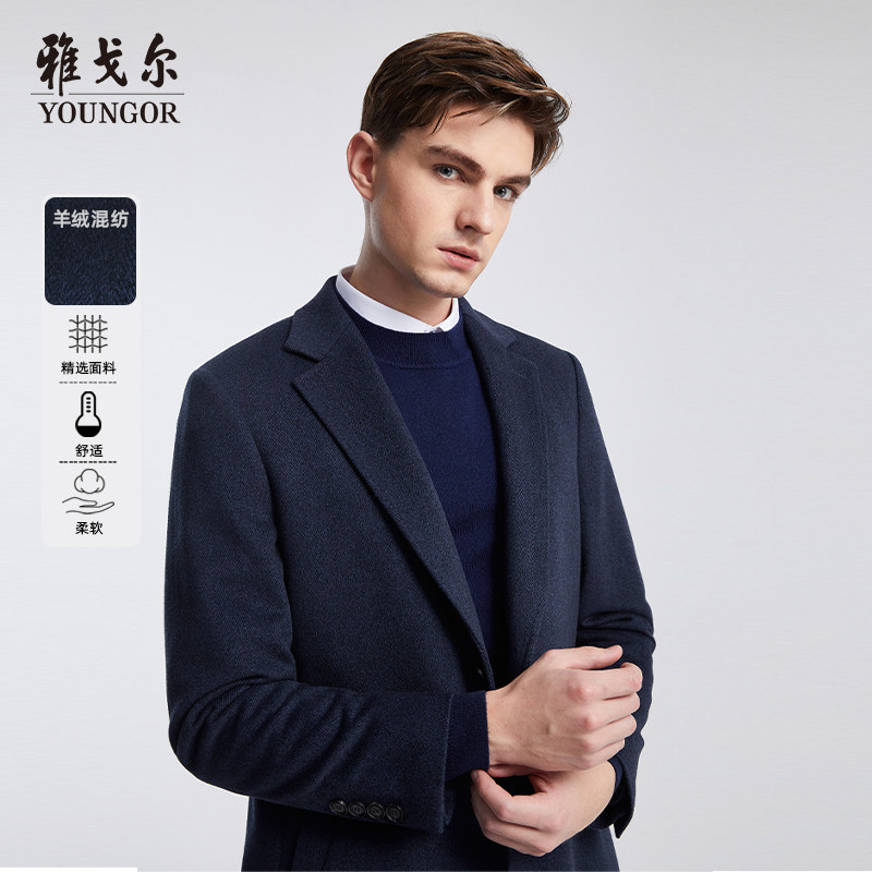 雅戈尔男士大衣秋冬新款官方商务休闲经典保暖羊毛羊绒外套4781