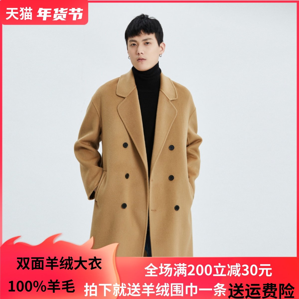 秋冬时尚双面羊绒大衣男长款100%羊毛双排扣过膝毛呢风衣外套加厚