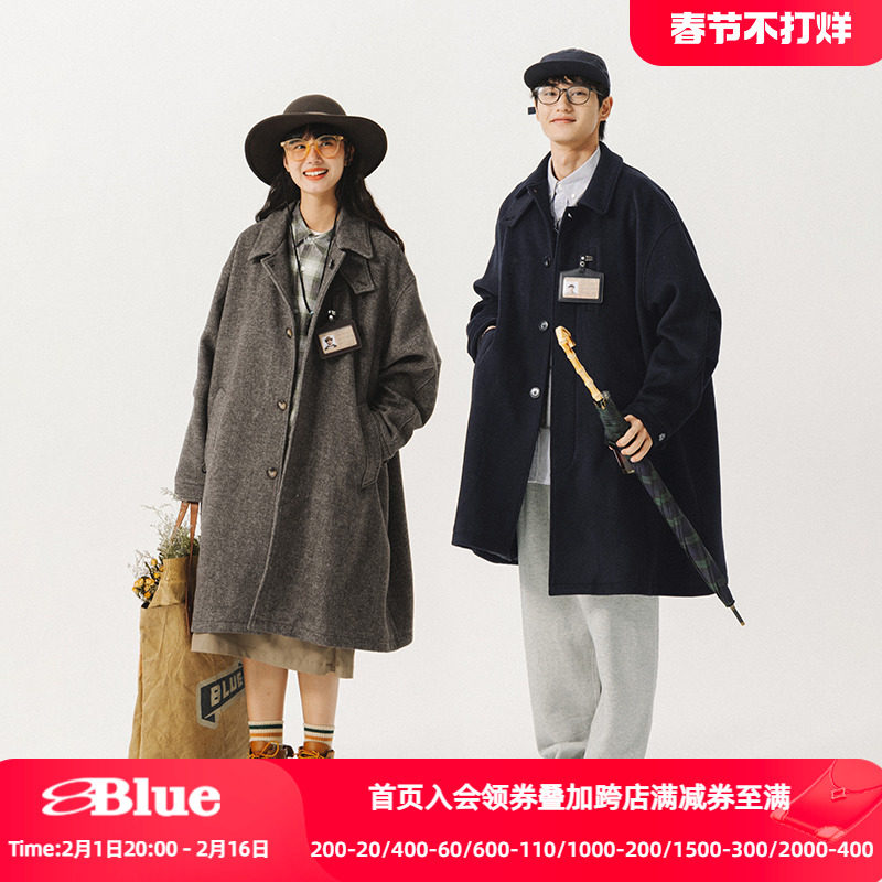 NOTHOMMEBLUE蓝岐2022冬季新款三袋加厚保暖情侣毛呢大衣外套男潮