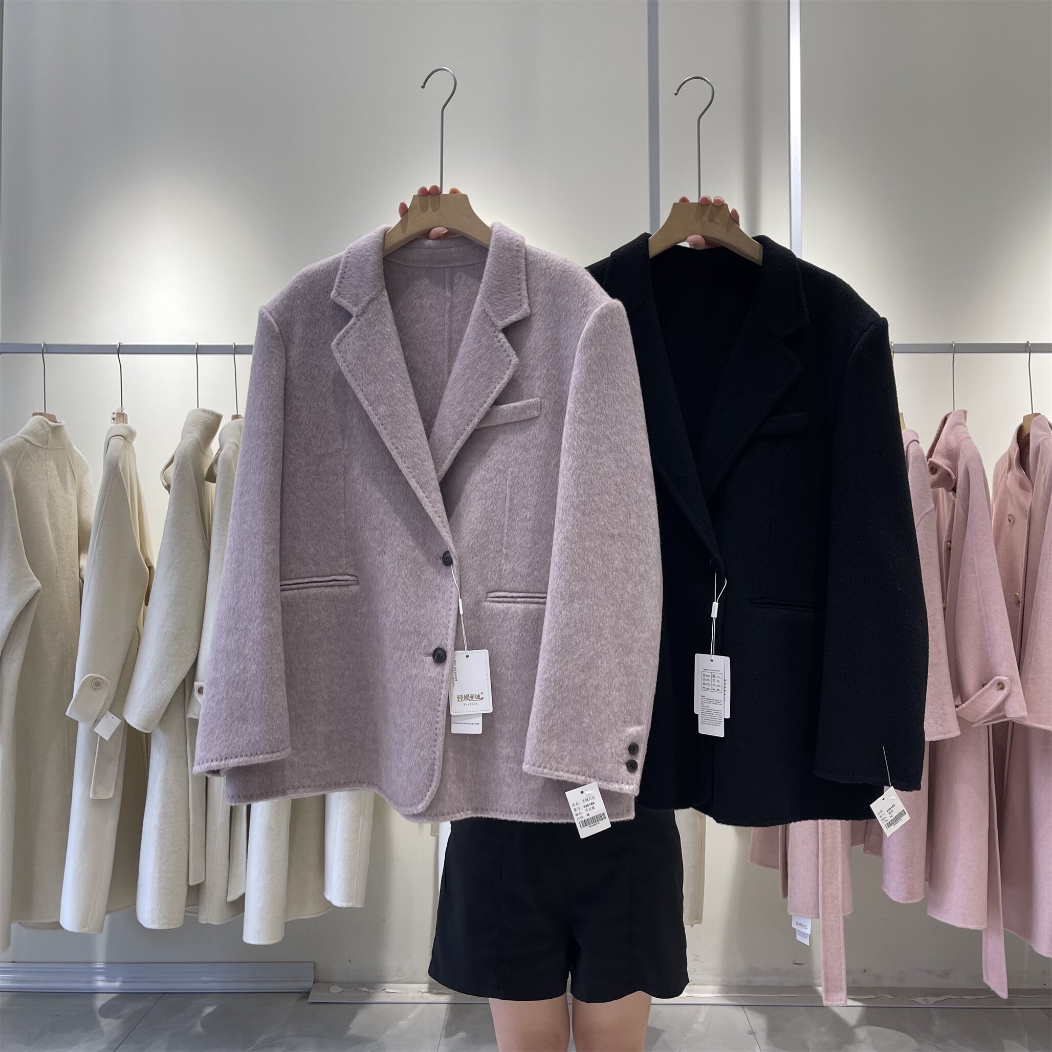 2023年秋冬新款宽肩西装领双面羊绒大衣女小个子甜酷风羊毛呢外套