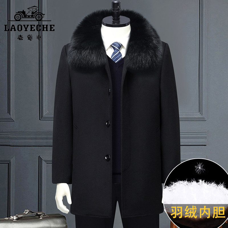 羊绒大衣男中长款冬季加厚中老年毛呢外套风衣可拆卸羽绒内胆毛领