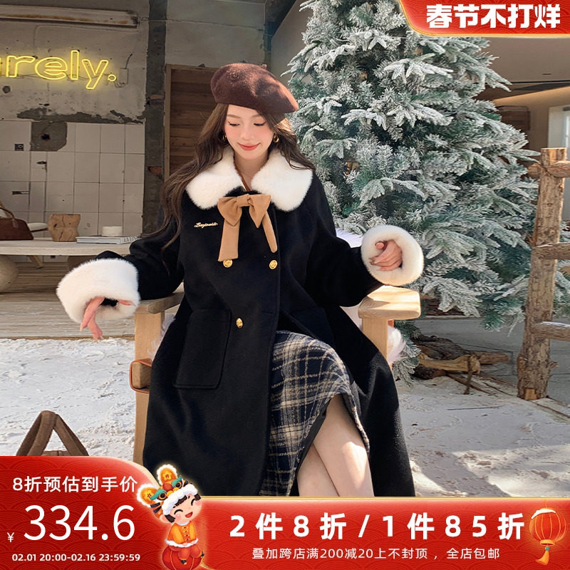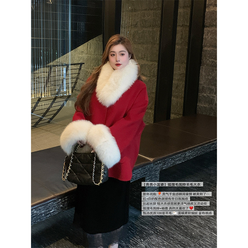 秋冬款狐狸毛领羊绒大衣女小个子中长款西装领修身显瘦羊毛呢外套