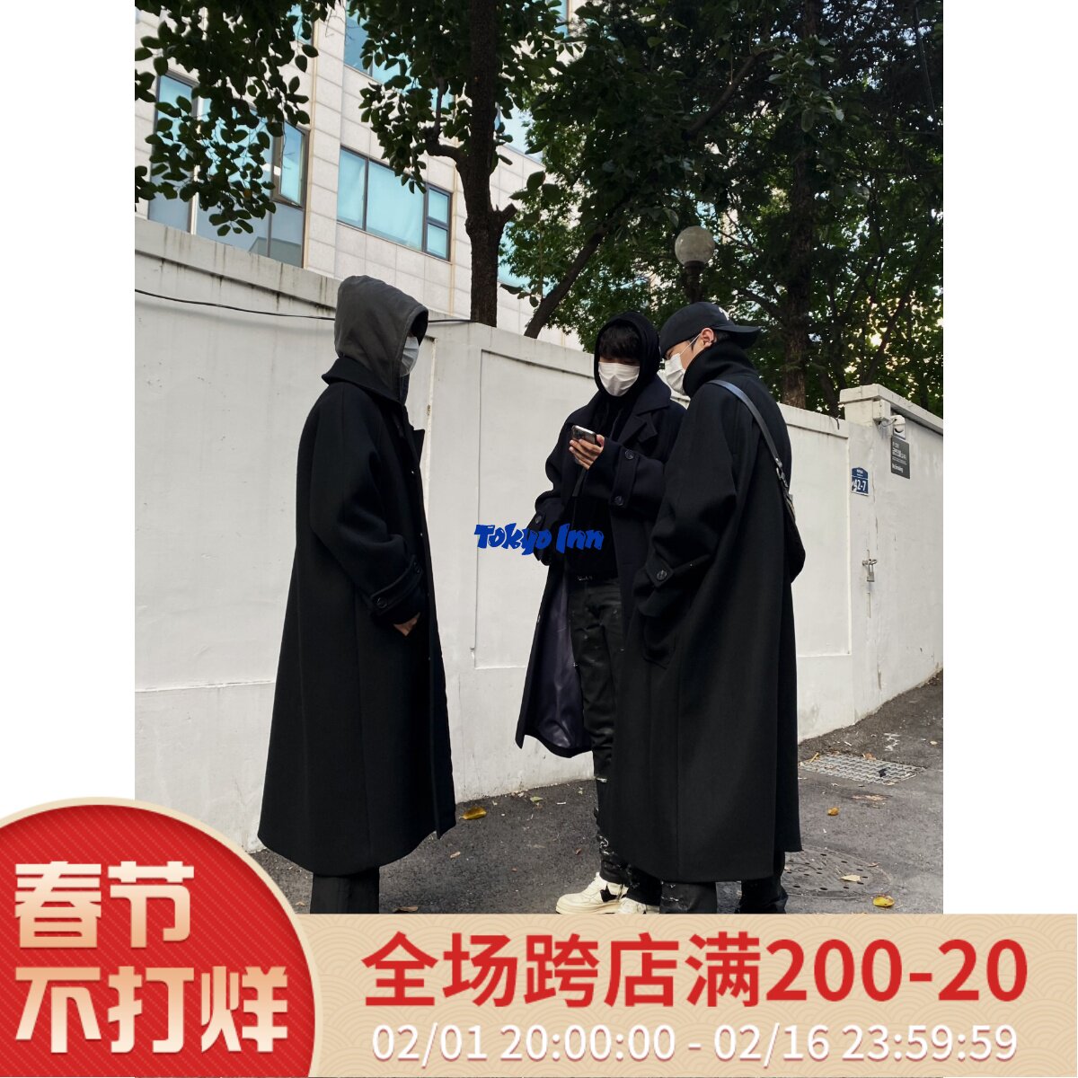 冬季新款顺毛呢子大衣男长款过膝韩版宽松帅气毛呢外套男英伦风衣
