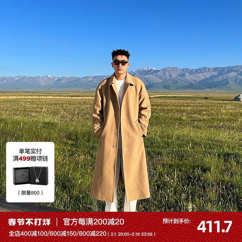 【绵羊毛】利郎官方毛呢大衣男装2023冬季商务休闲中长款保暖外套