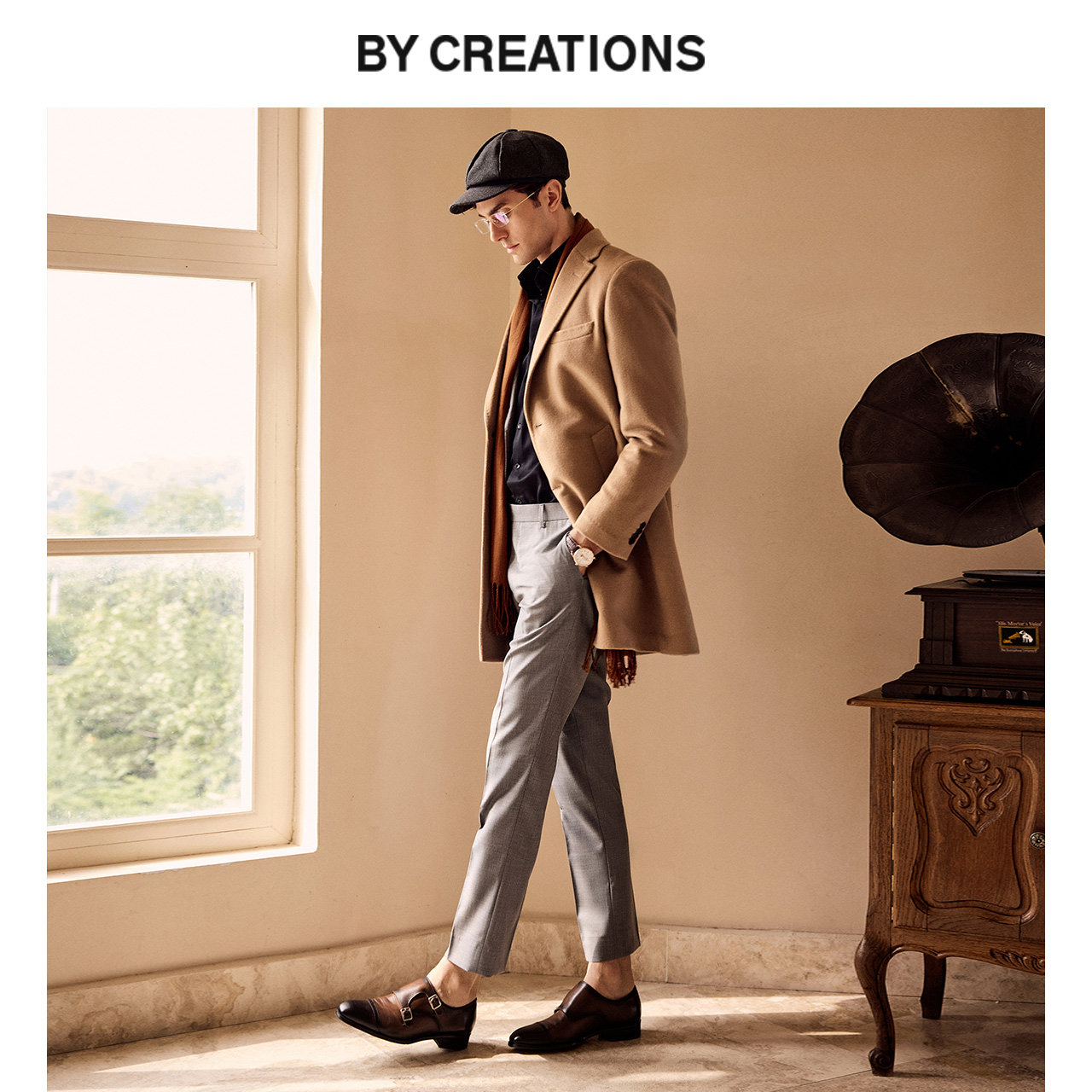 柏品纯澳洲羊毛切斯特菲尔德驼色大衣男冬中长款翻领商务毛呢外套