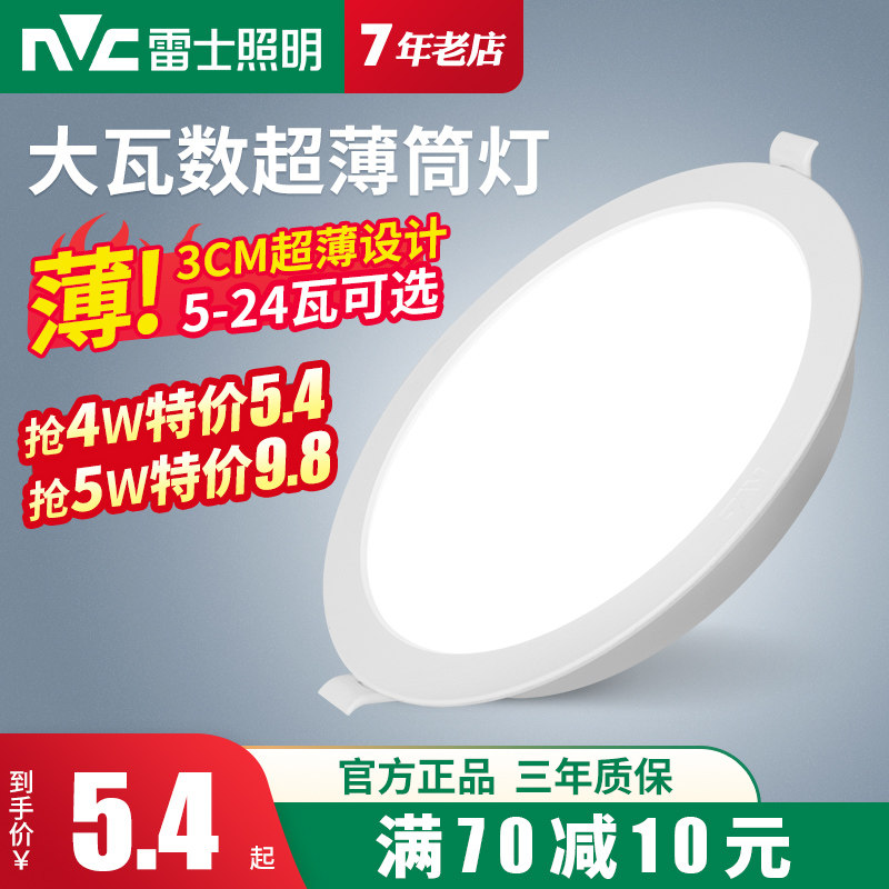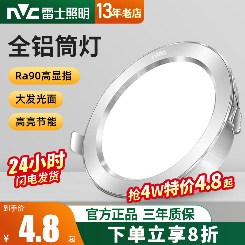 雷士照明led筒灯4w孔灯8公分7.5开孔嵌入式吊顶超薄客厅天花射灯