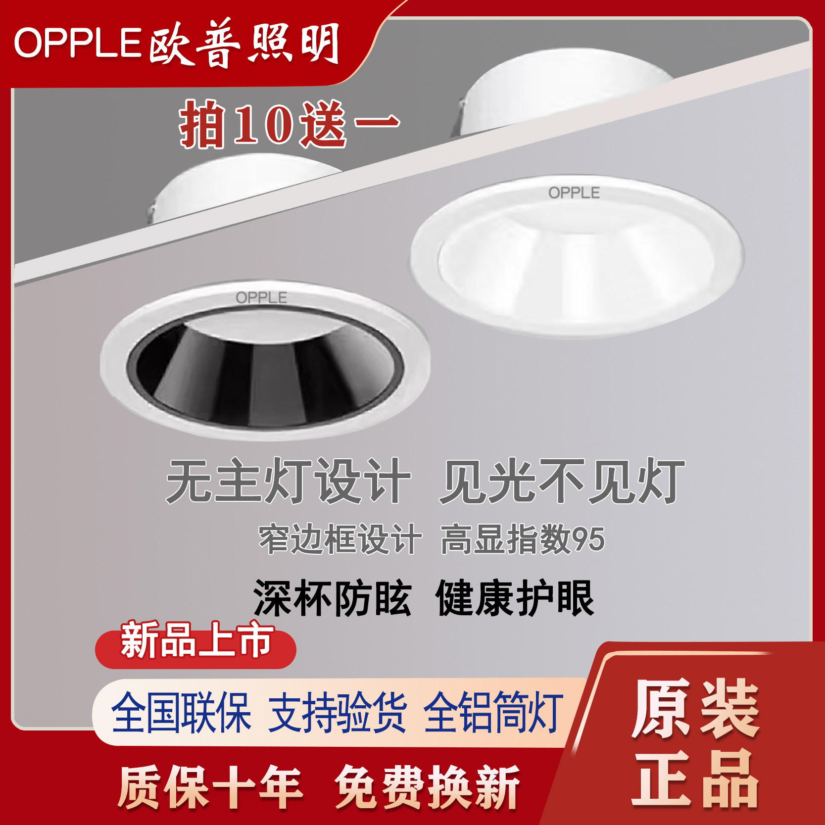欧普LED防眩光筒灯家用窄边框无主灯嵌入式天花灯全铝开孔7.5cm