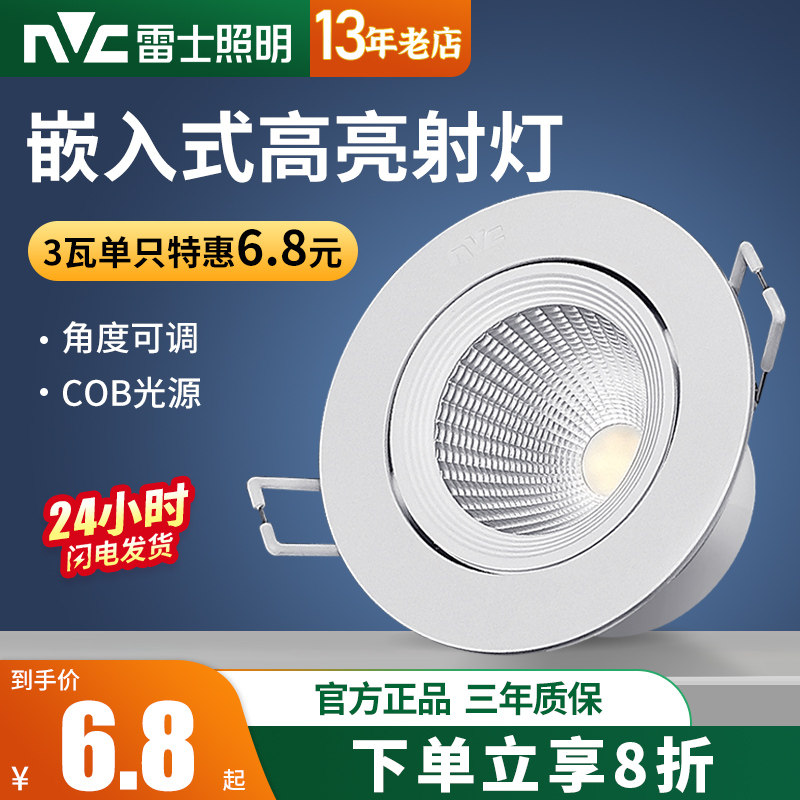 雷士照明LED射灯COB天花灯3W5W酒店服装展厅背景墙牛眼嵌入式筒灯