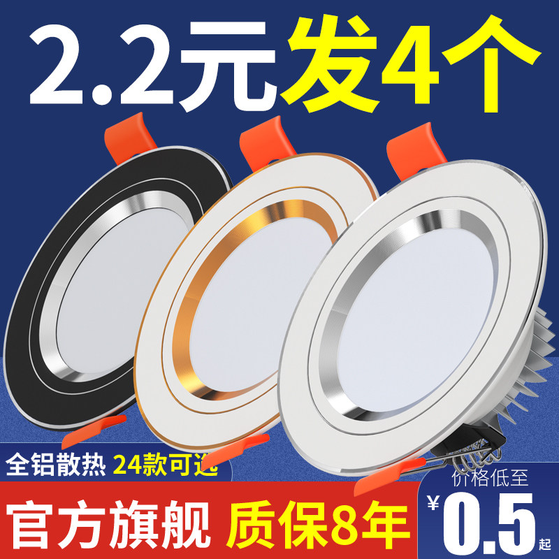 家用筒灯led天花射灯5w嵌入式开孔7.5cm客厅吊顶牛眼孔灯洞灯简灯