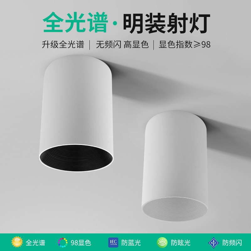 明装筒灯led长桶家用防眩射灯免开孔天花吸顶式北欧cob卧室过道