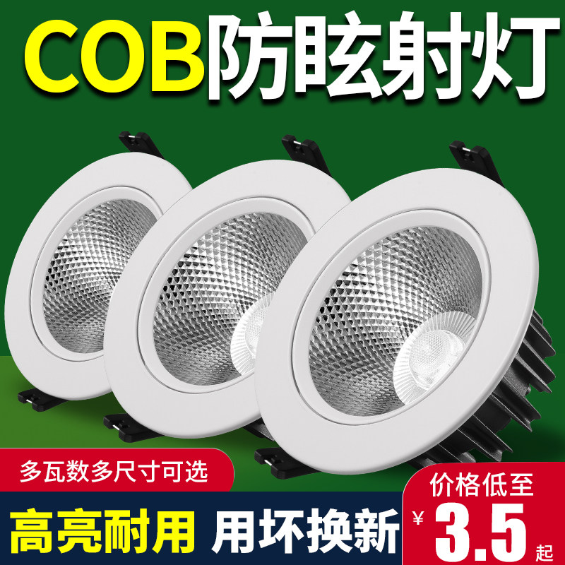 深藏防眩光射灯cob天花灯家用客厅嵌入式led筒灯全光谱照明洗墙灯