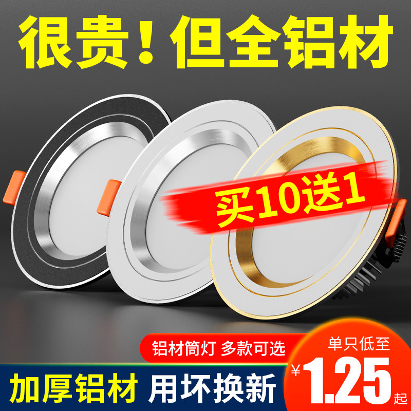 筒灯嵌入式家用led射灯天花灯三色变光客厅吊顶轻奢孔灯洞灯简灯