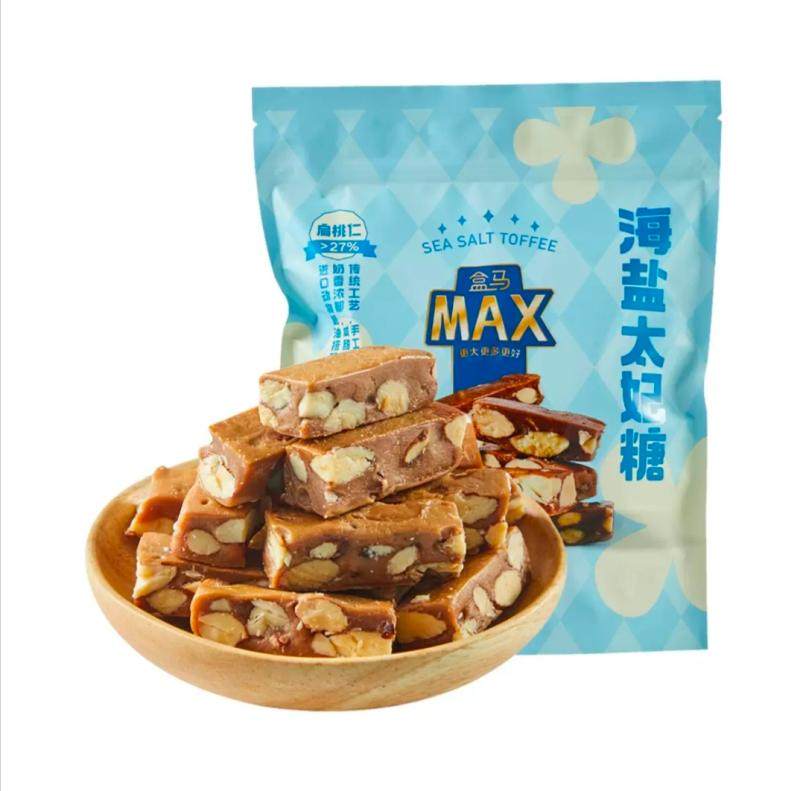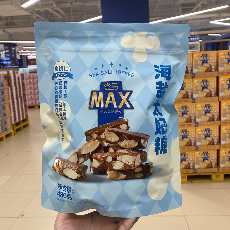盒马代购MAX海盐太妃糖480g扁桃仁杏仁坚果仁夹心糖果休闲小零食