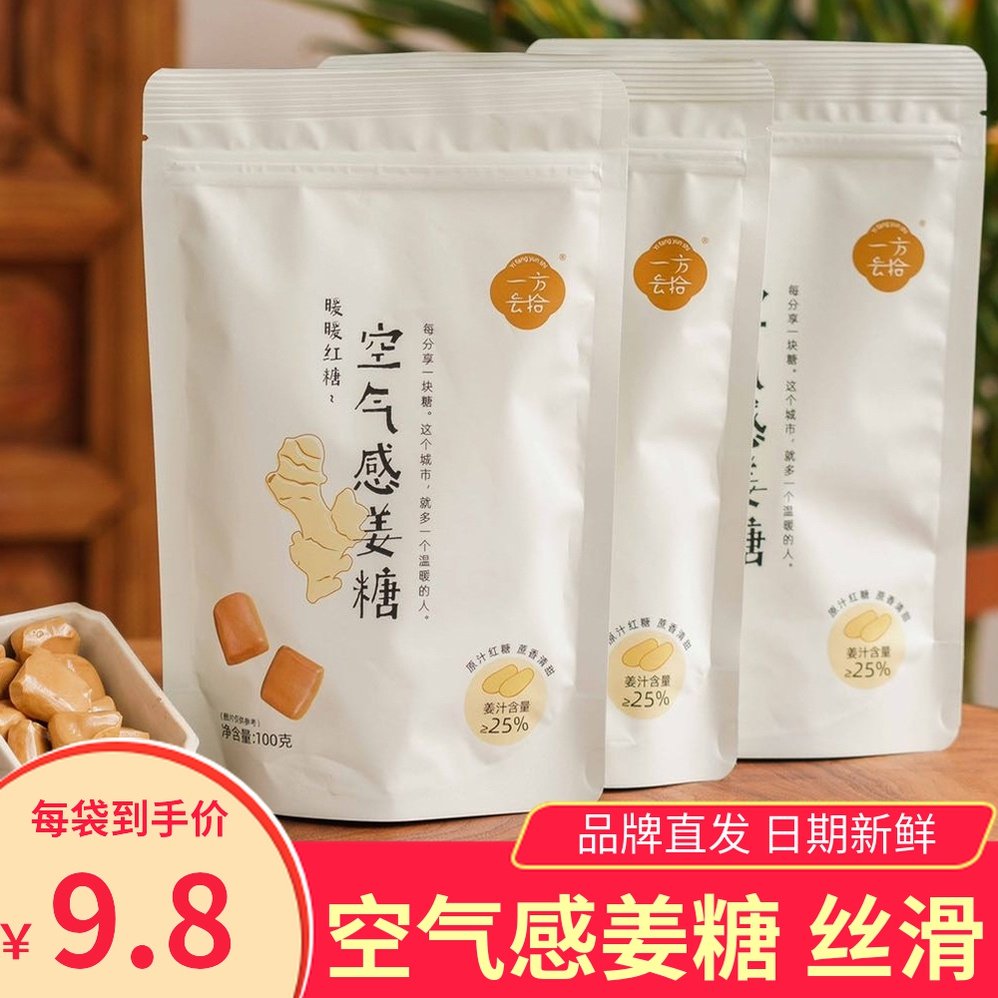一方云拾空气感姜糖100gx3袋软糖生姜味传统工艺醇香丝滑太妃糖果