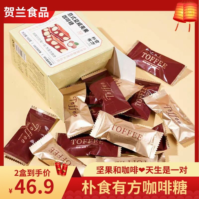 朴食有方意式夏威夷果咖啡糖100g*2盒软糖太妃糖喜糖醇香坚果奶糖
