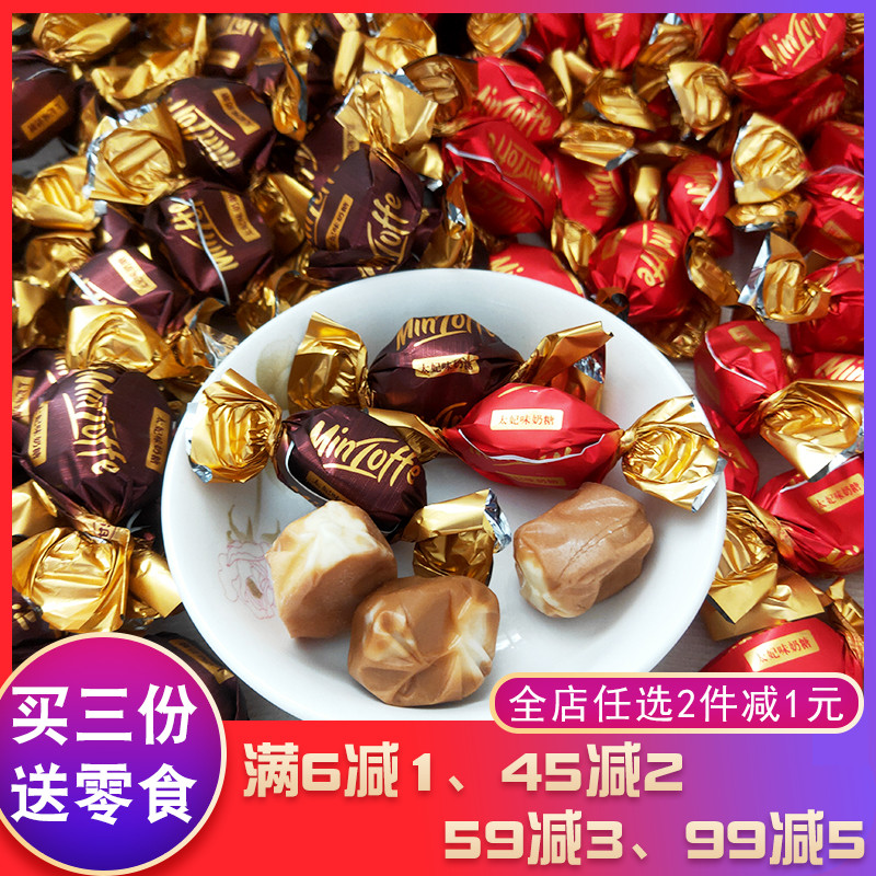 国产-俄罗斯紫皮糖巧克力夹心糖果酥喜糖零食500g+太妃糖252g年货