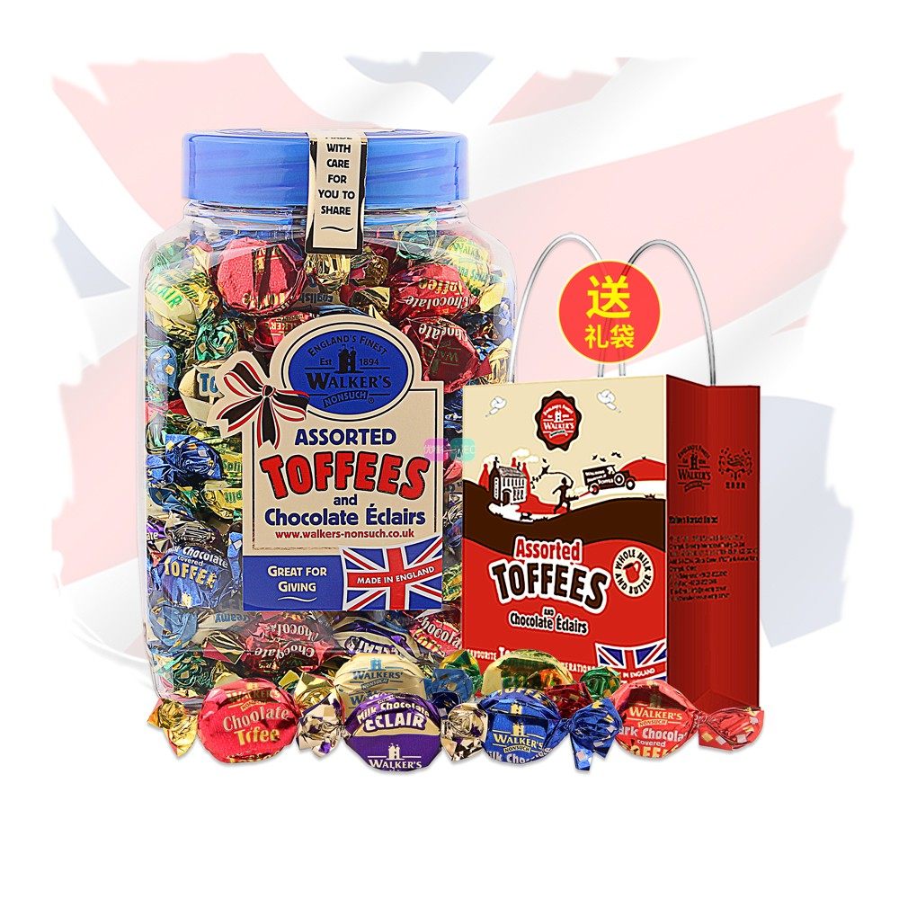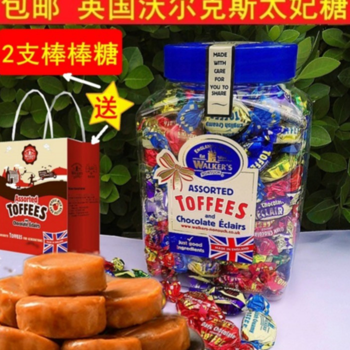 英国原装进口糖果礼盒装年货walkers沃尔克斯太妃糖桶装什锦软糖
