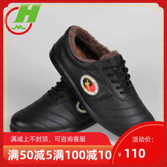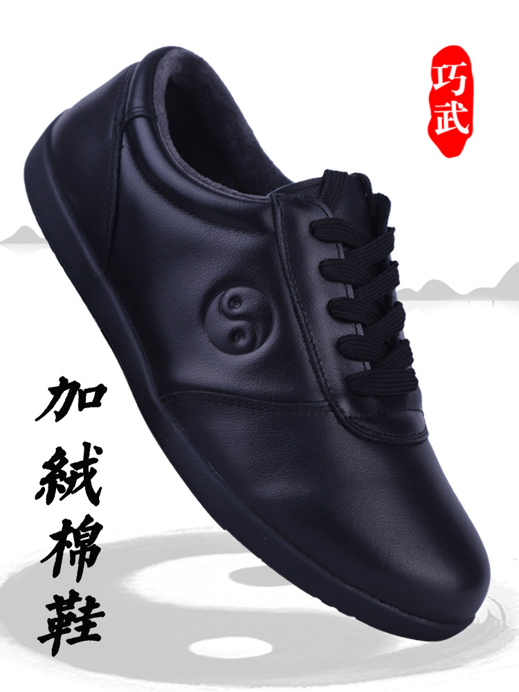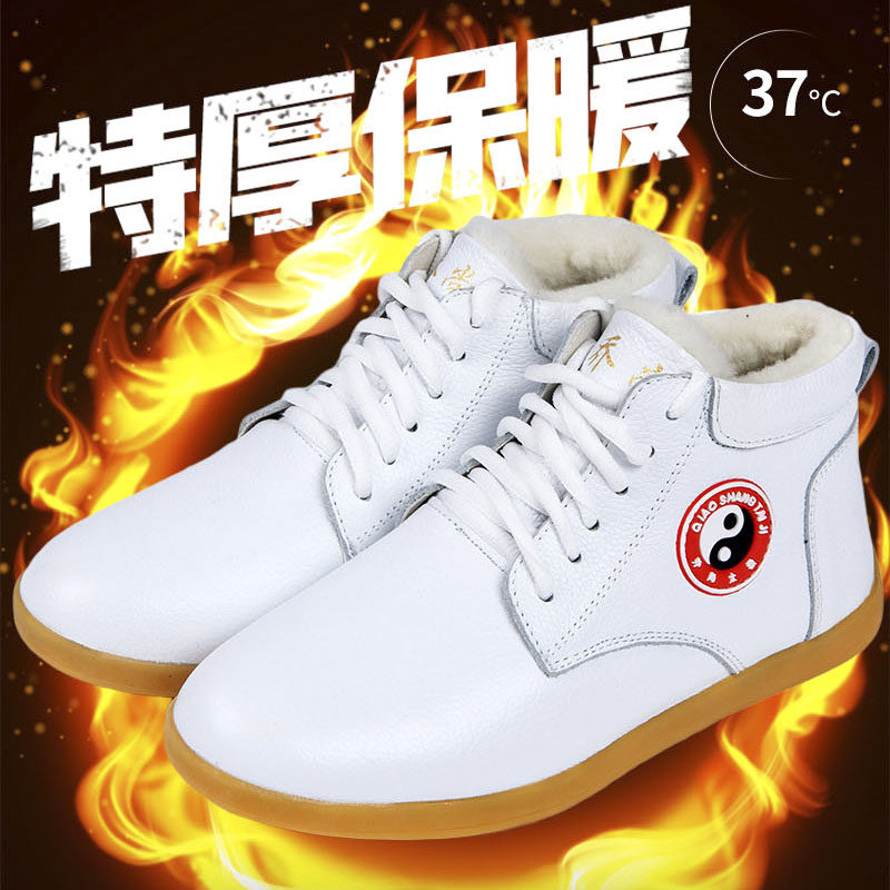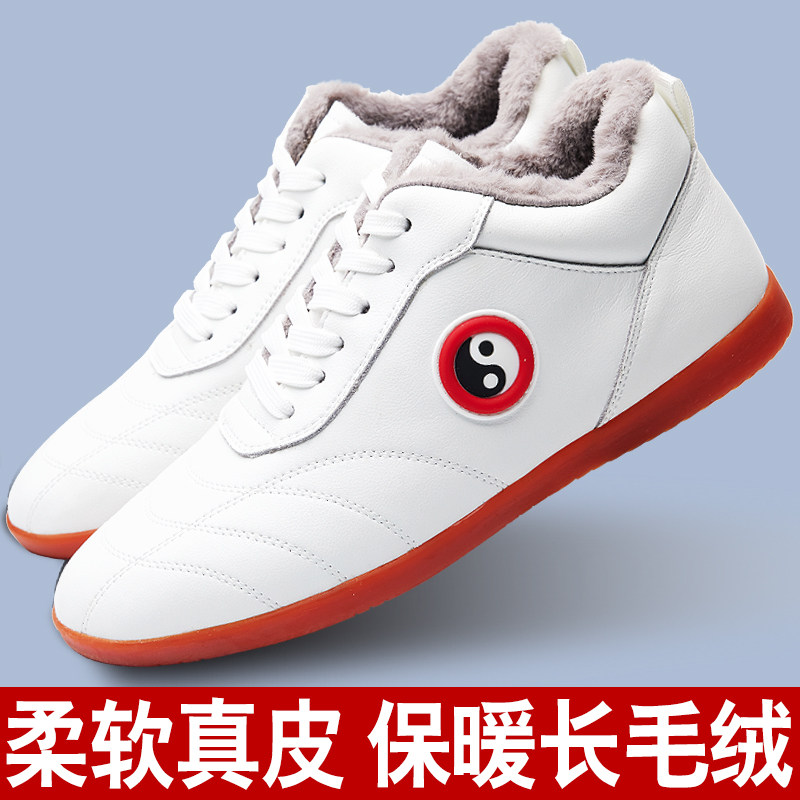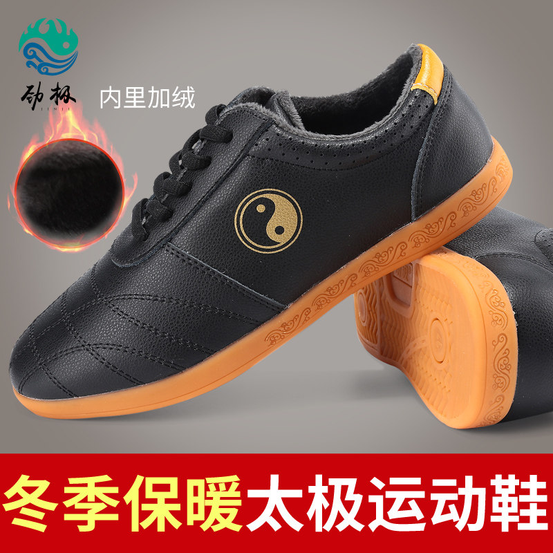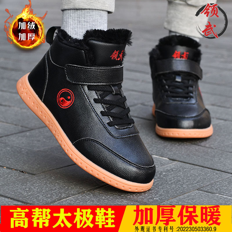 陈家沟秋冬季太极鞋女真皮牛筋底武术运动鞋男款加绒保暖太极拳鞋