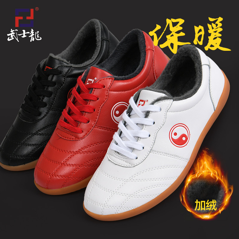 武士龙冬季加绒牛筋底真皮太极鞋男女耐磨防滑武术太极拳表演鞋