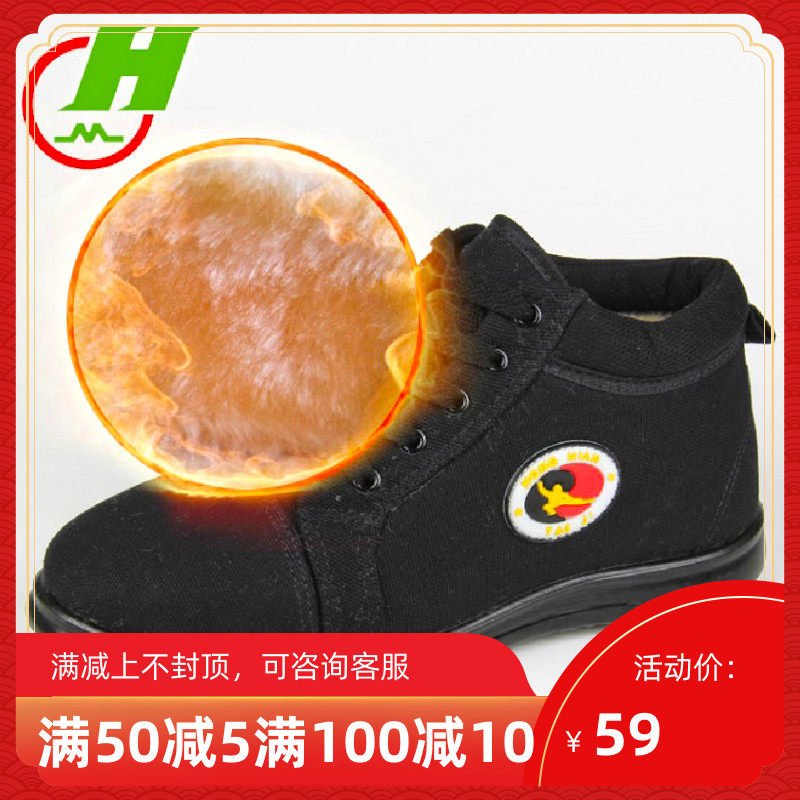 红棉太极鞋冬季武术鞋练功鞋帆布保暖加厚绒棉鞋男女太极拳鞋包邮