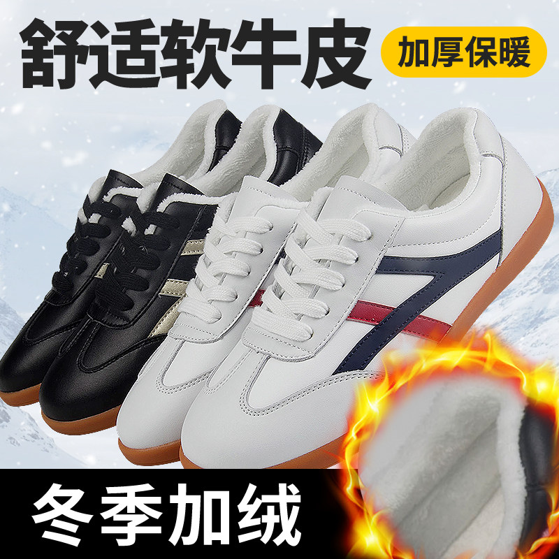 太极鞋男女真皮牛筋底秋冬季款运动鞋武术鞋加绒牛皮太极拳练功鞋
