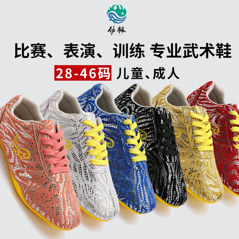 儿童武术竞赛鞋男女练功表演专用运动太极鞋成人软底炫彩训练鞋