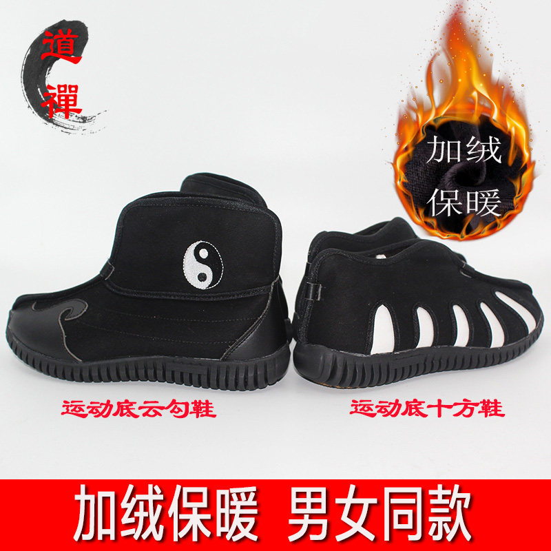 道士棉鞋男云勾太极棉靴女加绒保暖练功鞋防滑中高帮太极十方棉鞋