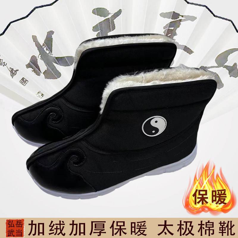 冬季道士鞋道家保暖棉靴男 武当道家练功鞋子太极靴短棉靴女云鞋