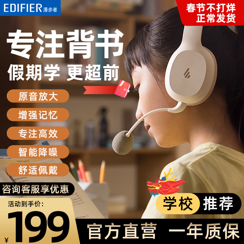 漫步者K750W儿童诵读耳返耳机麦头戴式蓝牙学习专用记忆背书神器