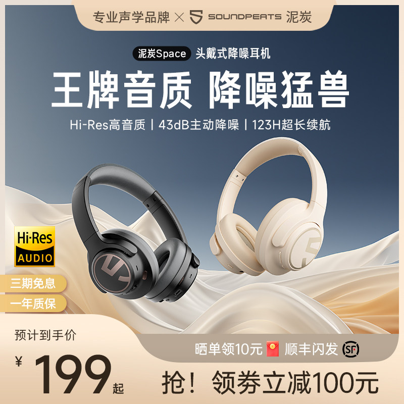 SoundPEATS泥炭Space头戴式耳机蓝牙主动降噪无线游戏电脑耳麦竞