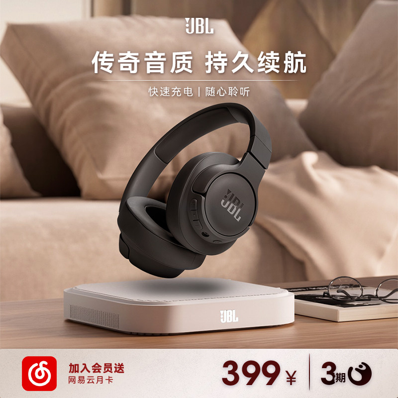 【会员加赠】JBL T520BT无线蓝牙耳机长效续航运动头戴式耳机耳麦