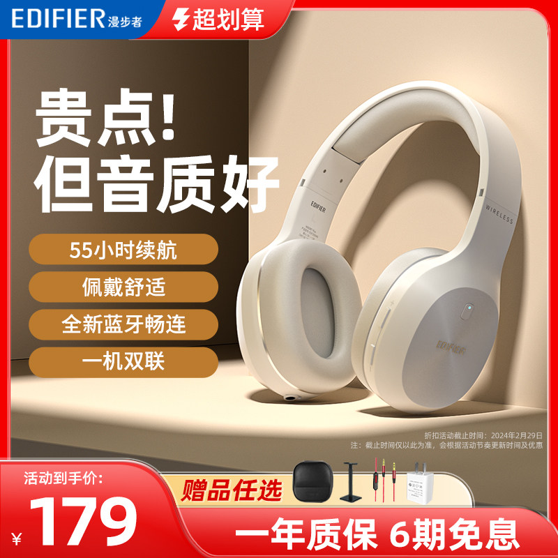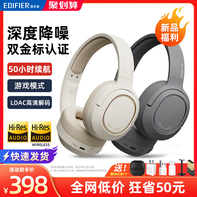 漫步者头戴式主动降噪蓝牙耳机手机电脑运动游戏音乐耳麦W820NB