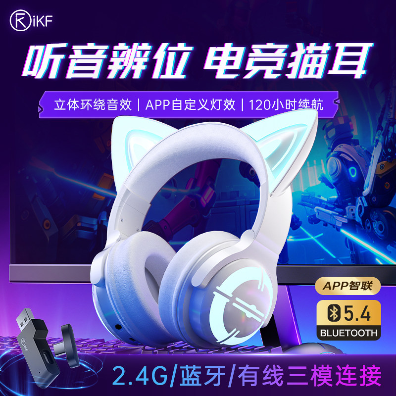 iKF T1头戴式耳机无线蓝牙2024新款电脑电竞游戏降噪耳麦超长待机
