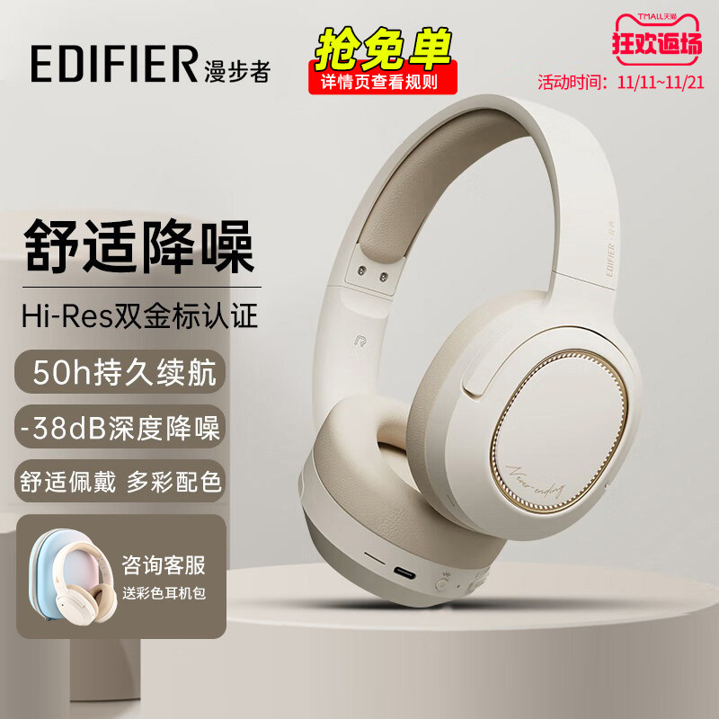漫步者花再FreePro双金标主动降噪蓝牙耳机头戴式无线耳麦w820nb